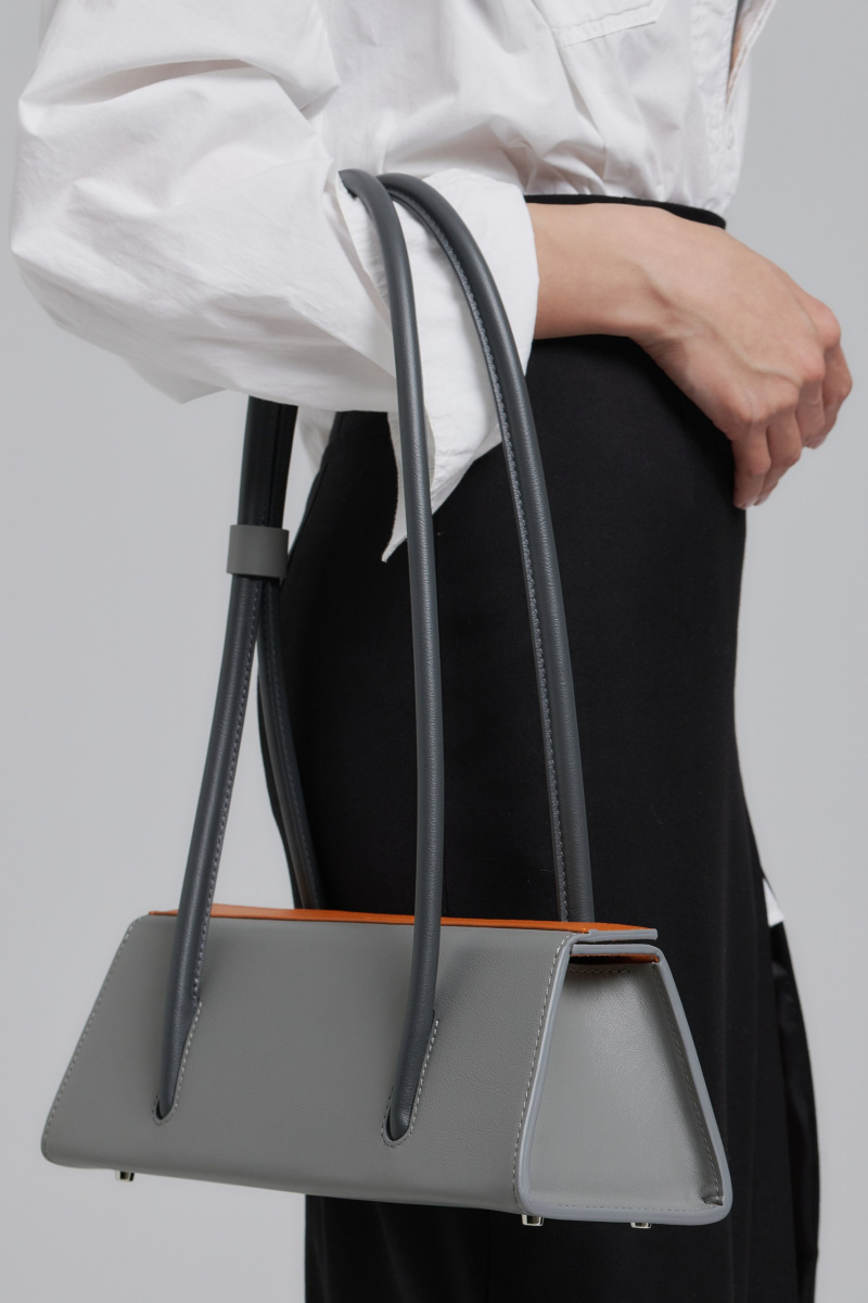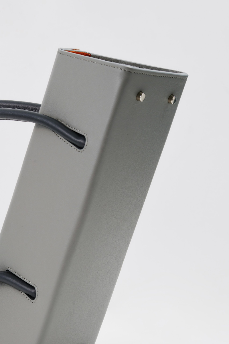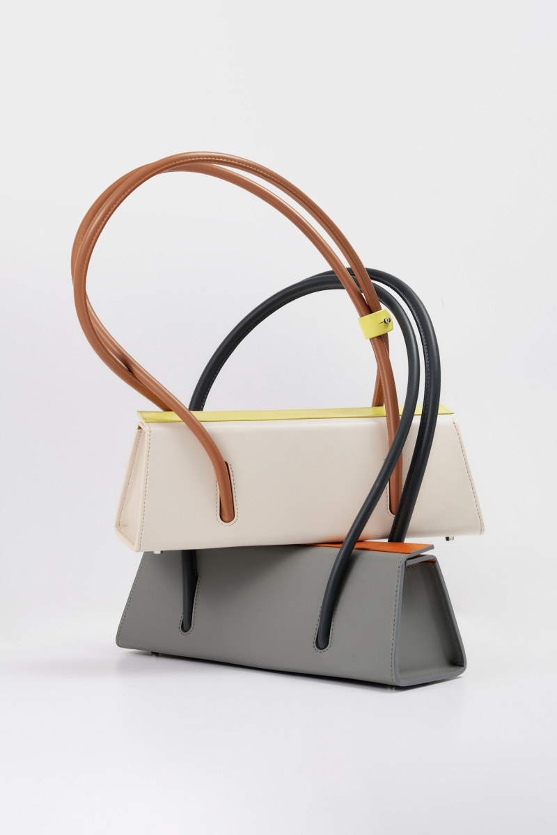 Всё внимание сконцентрировано на форме и цвете, а также дополнена длинными ручками. Ручки будто врезаны в корпус и постепенно выплывают из чистого лаконичного силуэта формы.
