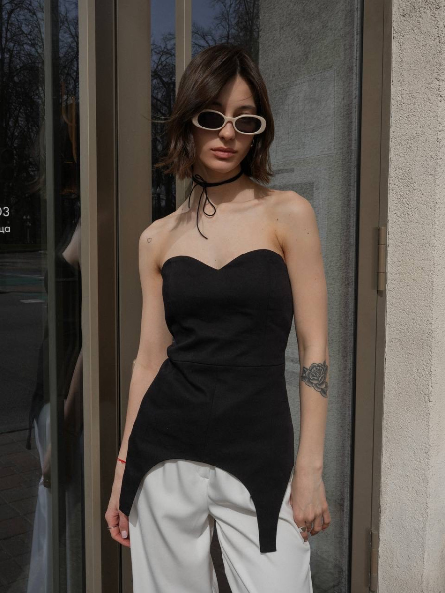 Корсет в черном цвете для 1000 и 1 образа. Отлично сочетается с джинсами, брюками и юбками разной длины. Застегивается на молнию сзади.