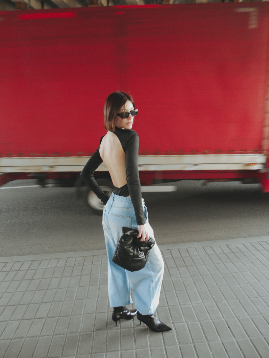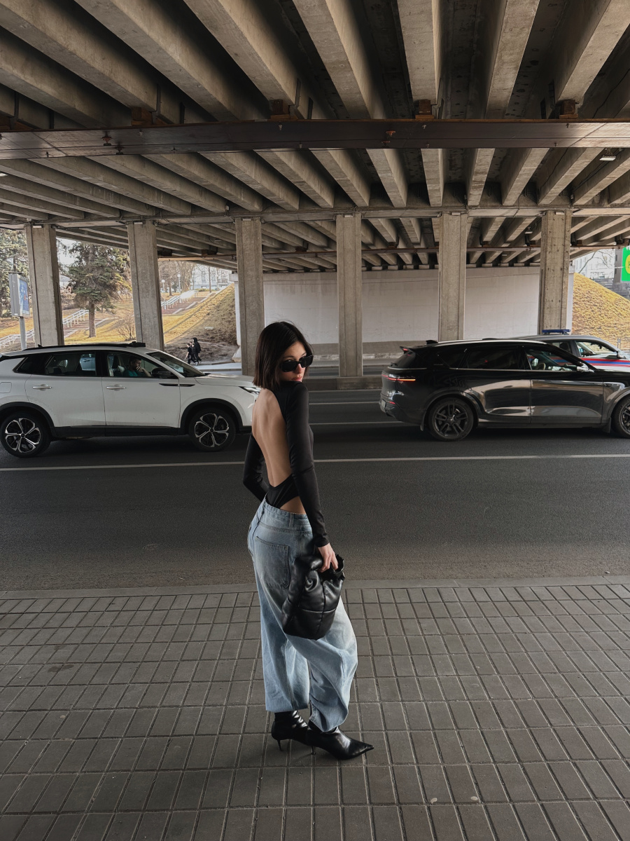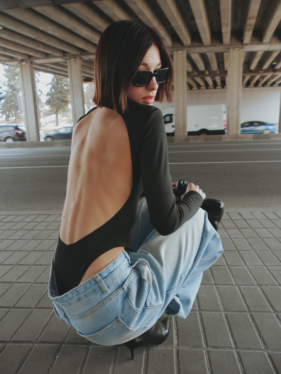 Боди с открытой спинкой — новинка бренда и мастхев весны. Оно станет дополнением для брюк, джинсов и юбок различной длины. Акцентные детали боди: глубокий вырез на спинке и горло стойка. Застегивается на две пуговицы на горле и на крючки. Изделие выполнено из плотного тянущегося материала с небольшим сатиновым покрытием.