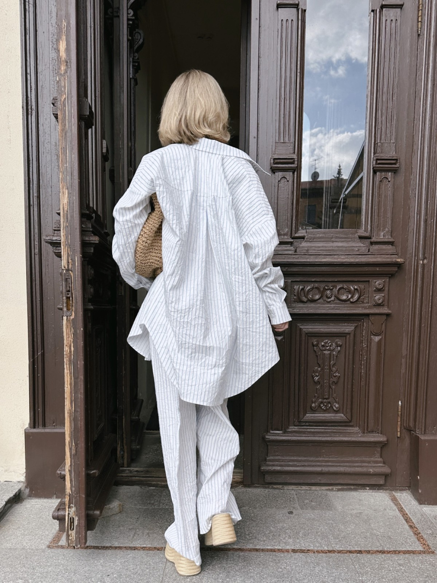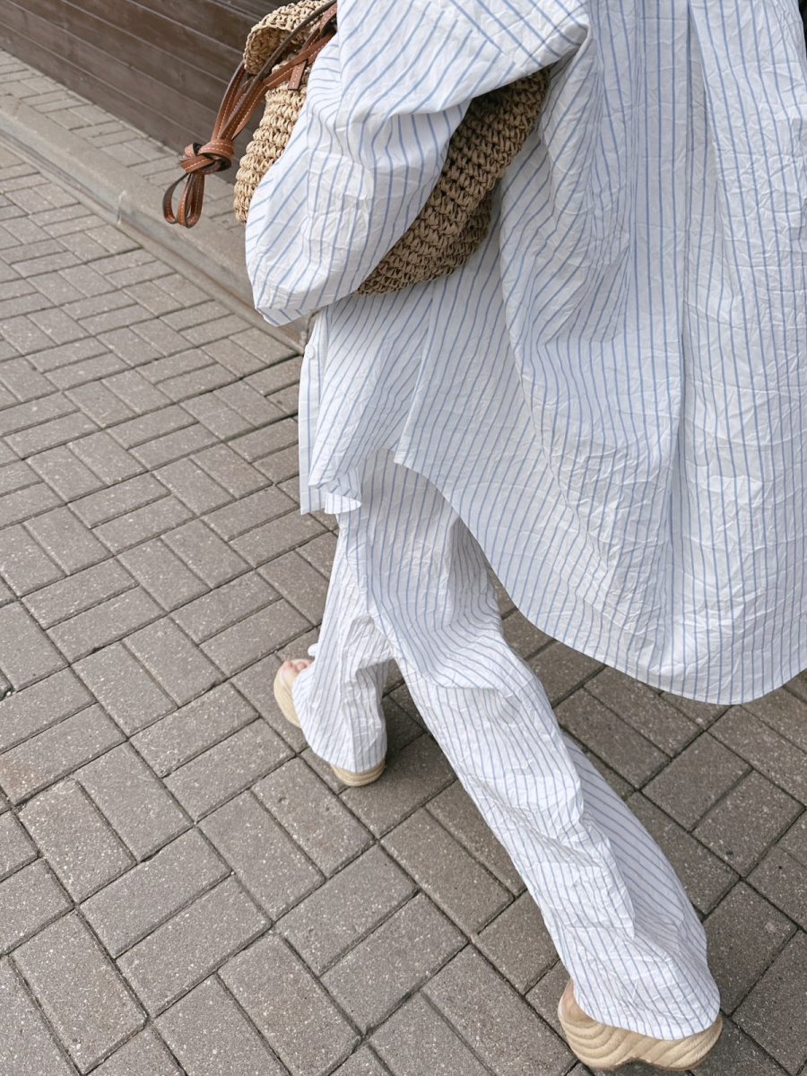 Невесомая текстура и расслабленный крой делают комплект идеальным для жарких городских дней или отпуска.