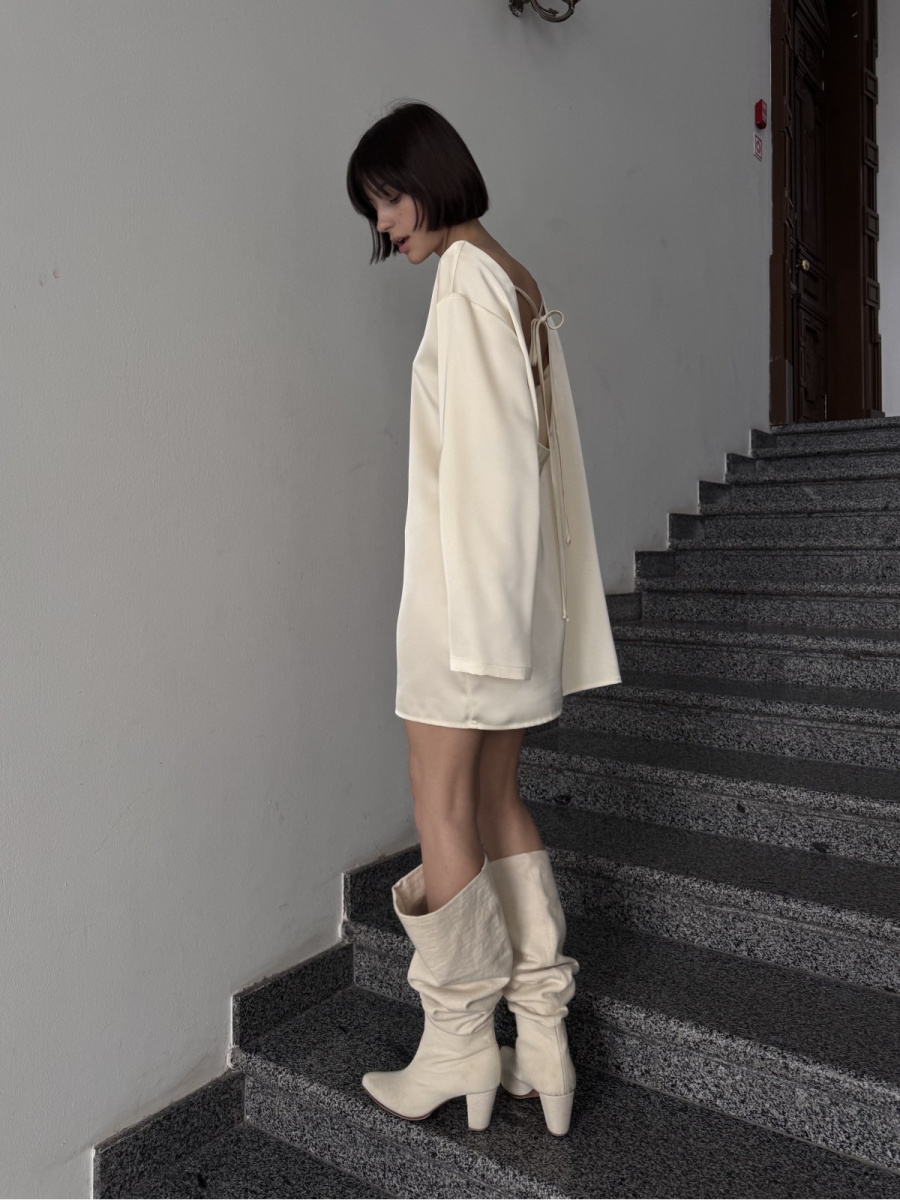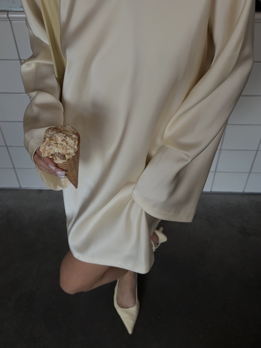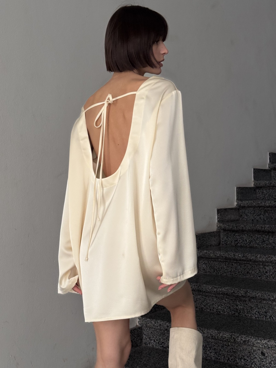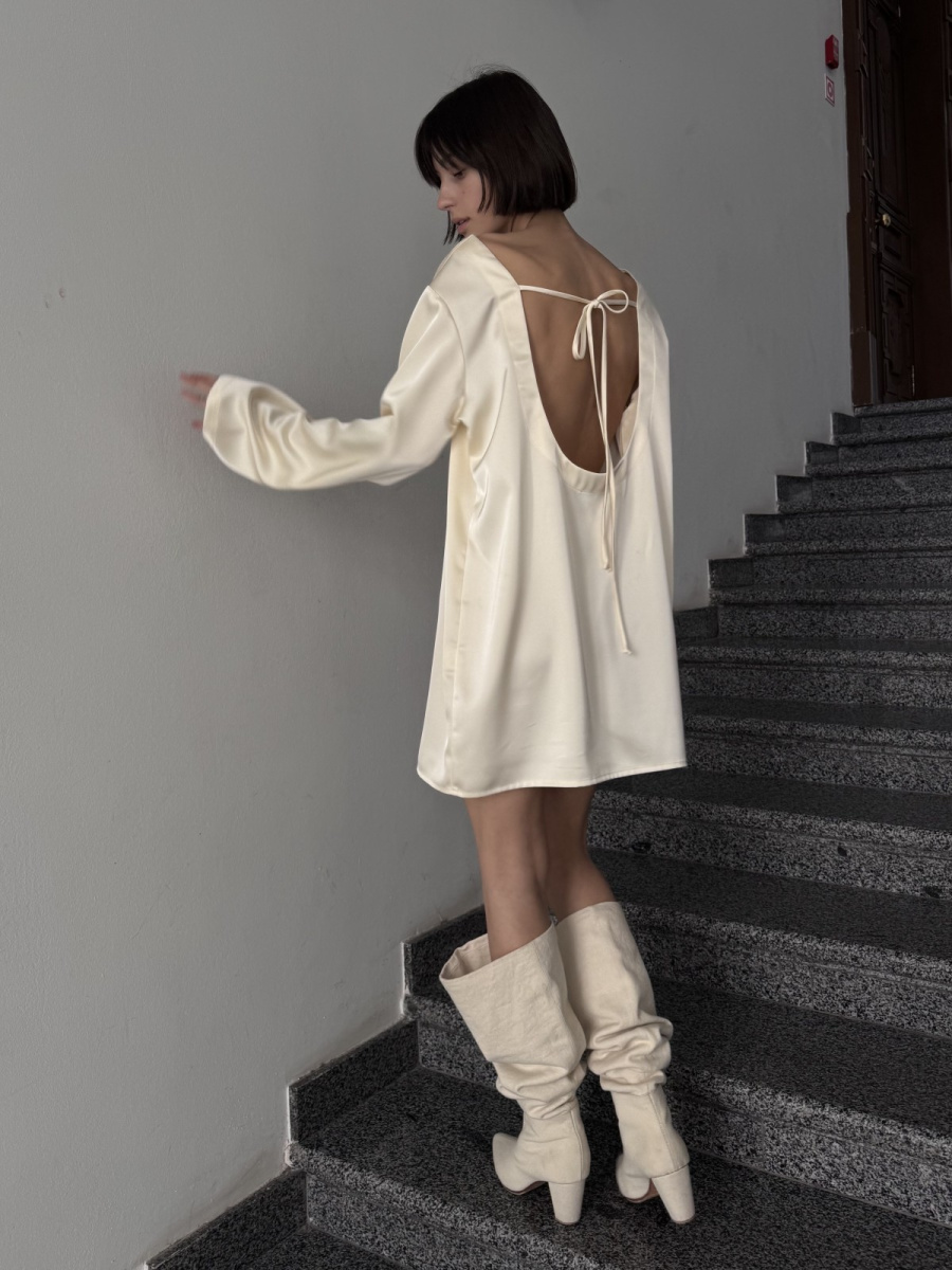 Идеальное платье в длине мини для весенне-летнего сезона и укороченная версия бестселлер бренда — BACK MINI в трендовом цвете сливочное масло.
