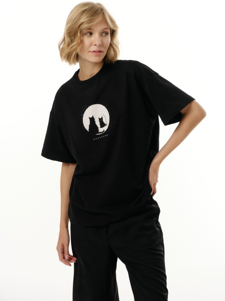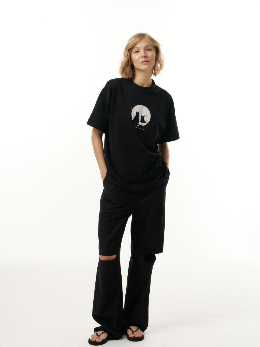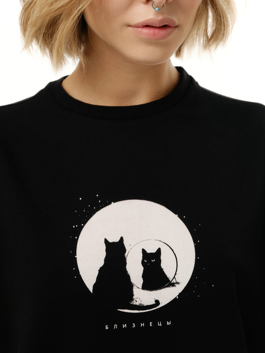 Уникальный принт с котами, разработанный иллюстратором, очень точно отражает характер каждого знака зодиака. Футболка плотная имеет оверсайз крой и подойдет на любой тип фигуры.
