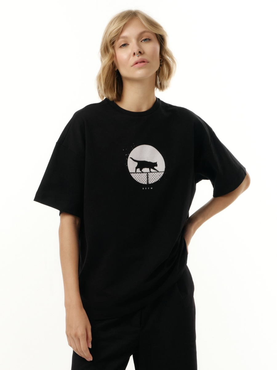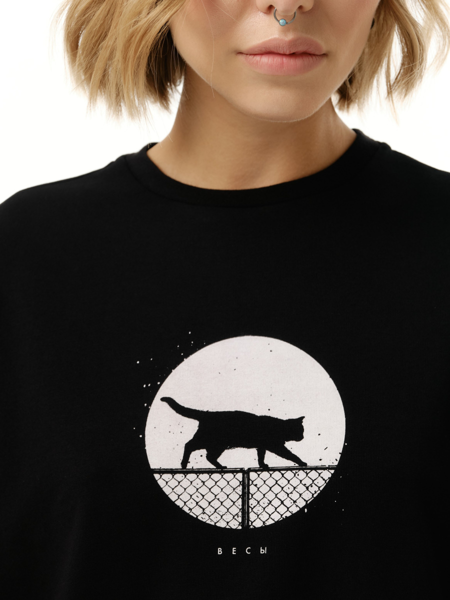 Уникальный принт с котами, разработанный иллюстратором, очень точно отражает характер каждого знака зодиака. Футболка плотная имеет оверсайз крой и подойдет на любой тип фигуры.