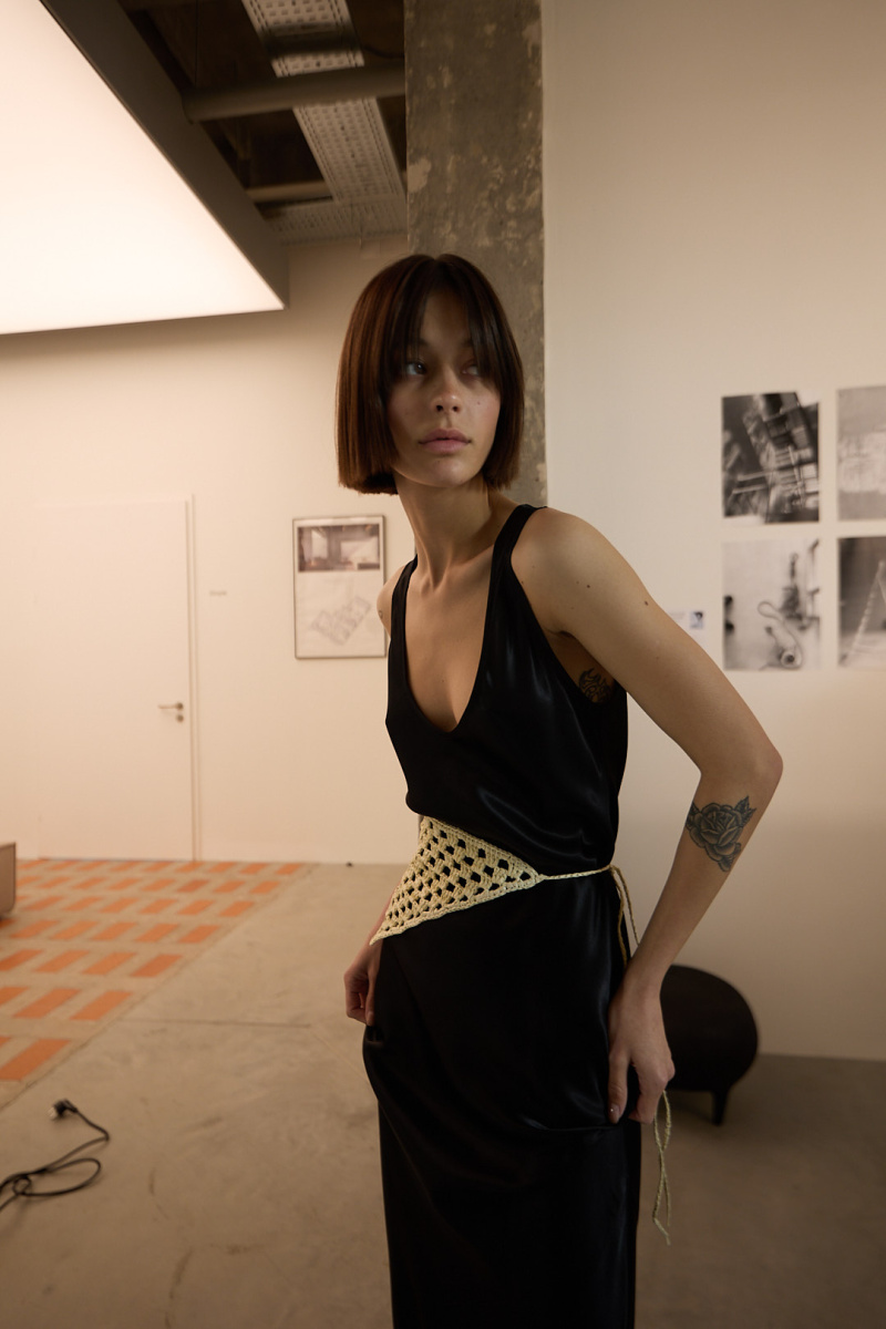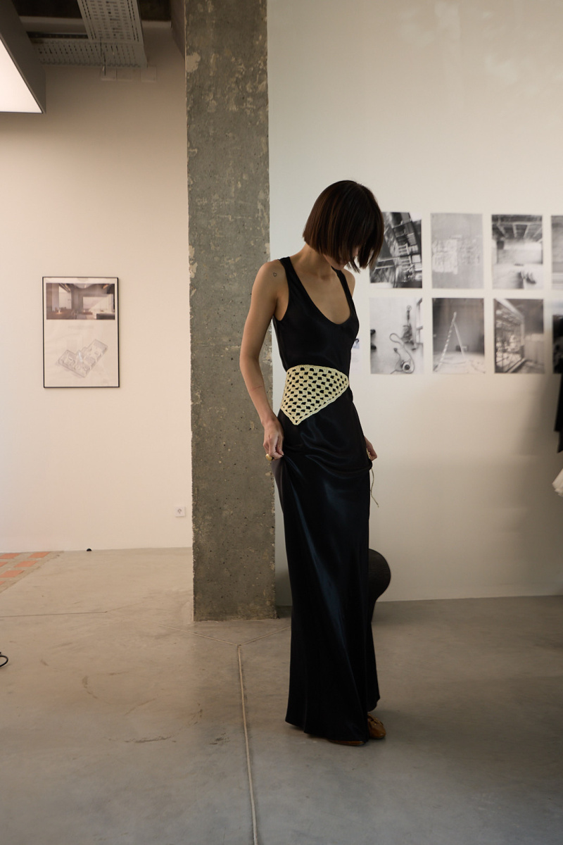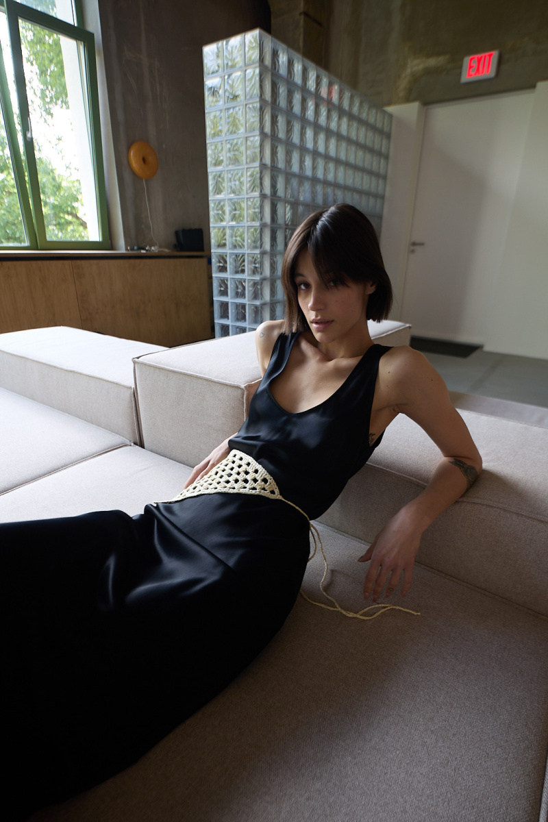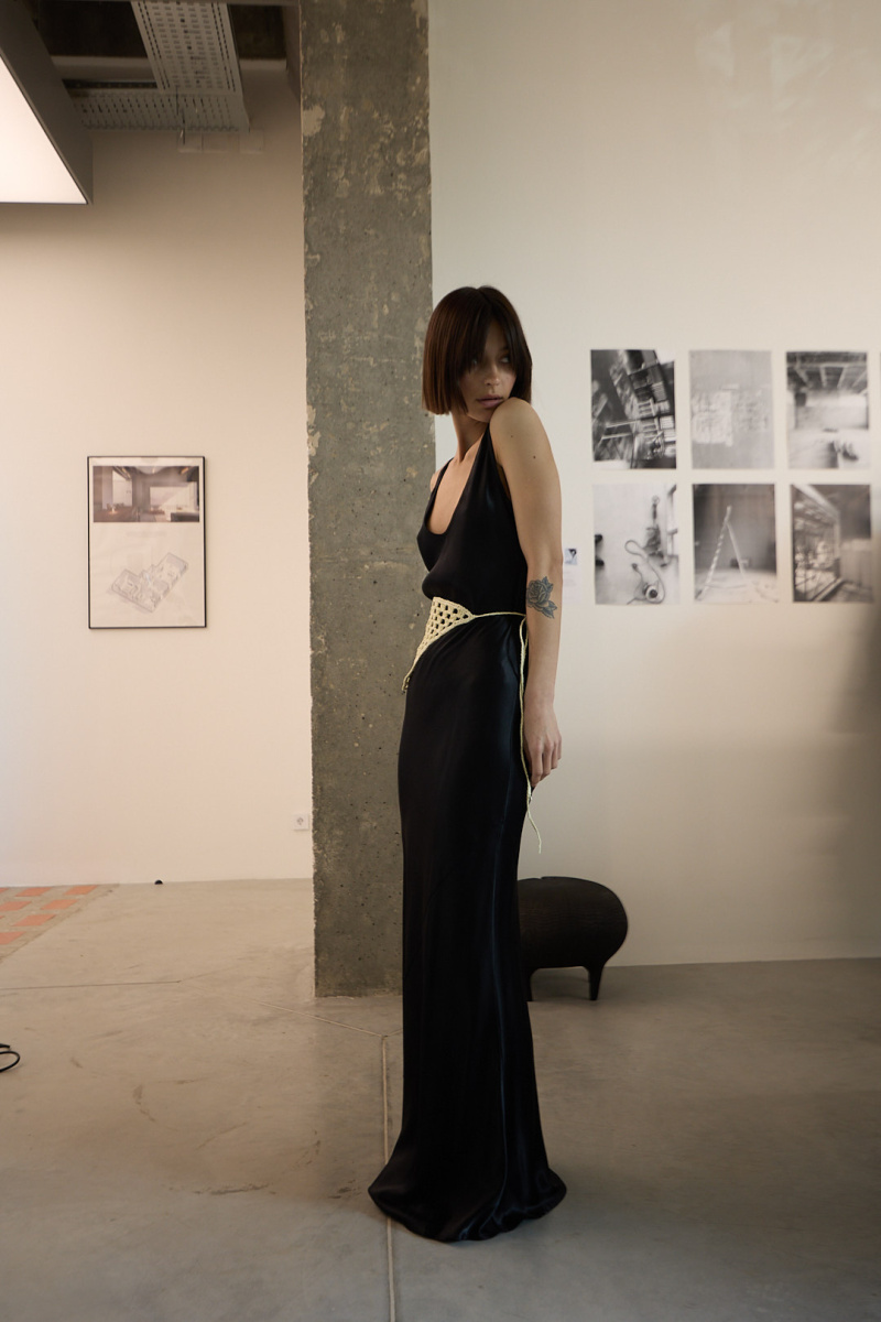 Платье из шелковистой вискозы, выкроено накосую, длина в пол, верх платья на широких бретелях