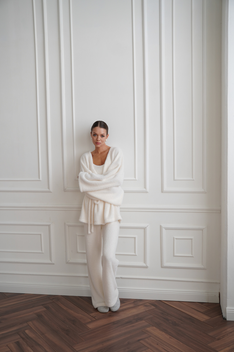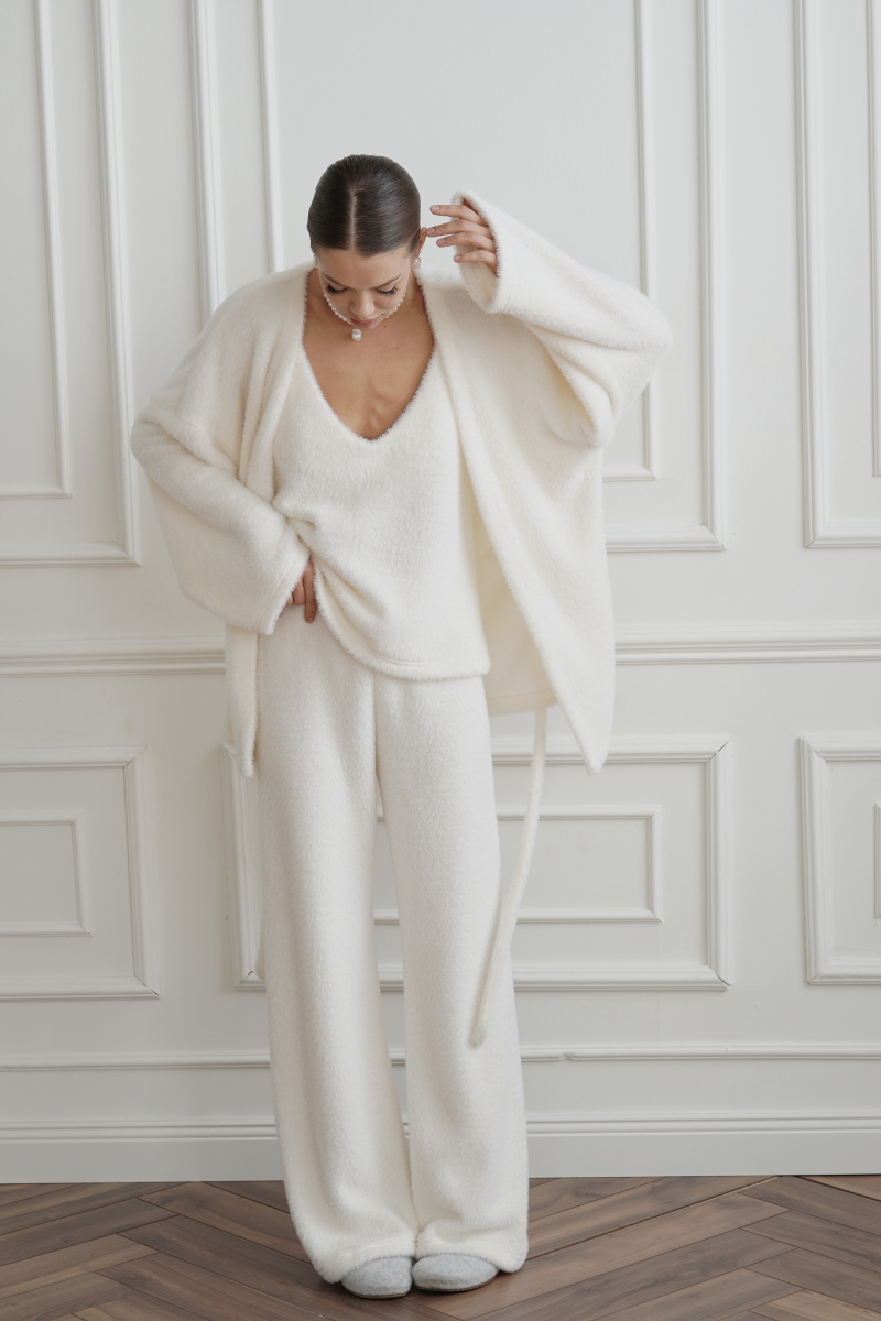 Мягкий, уютный и приятный к телу материал, который подарит вам чувство нежности и комфорта. Дополнить образ можно брюками из этой серии.