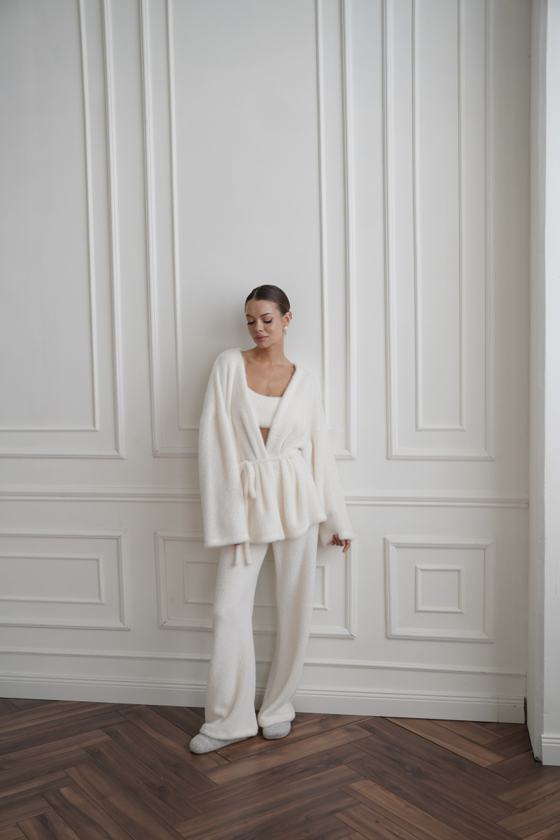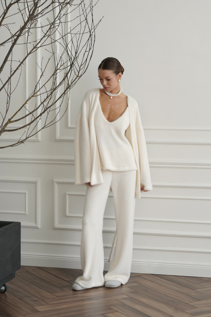 Мягкий, уютный и приятный к телу материал, который подарит вам чувство нежности и комфорта. Дополнить образ можно кардиганом из этой серии.