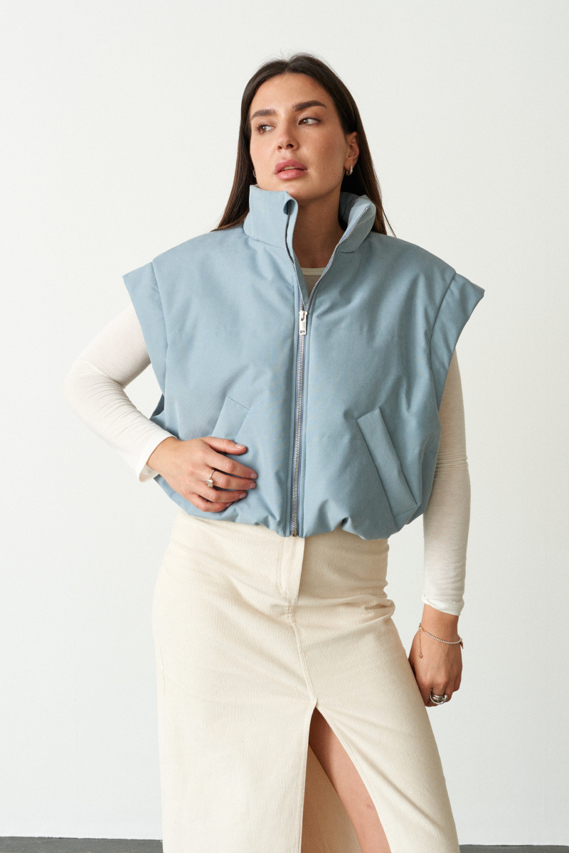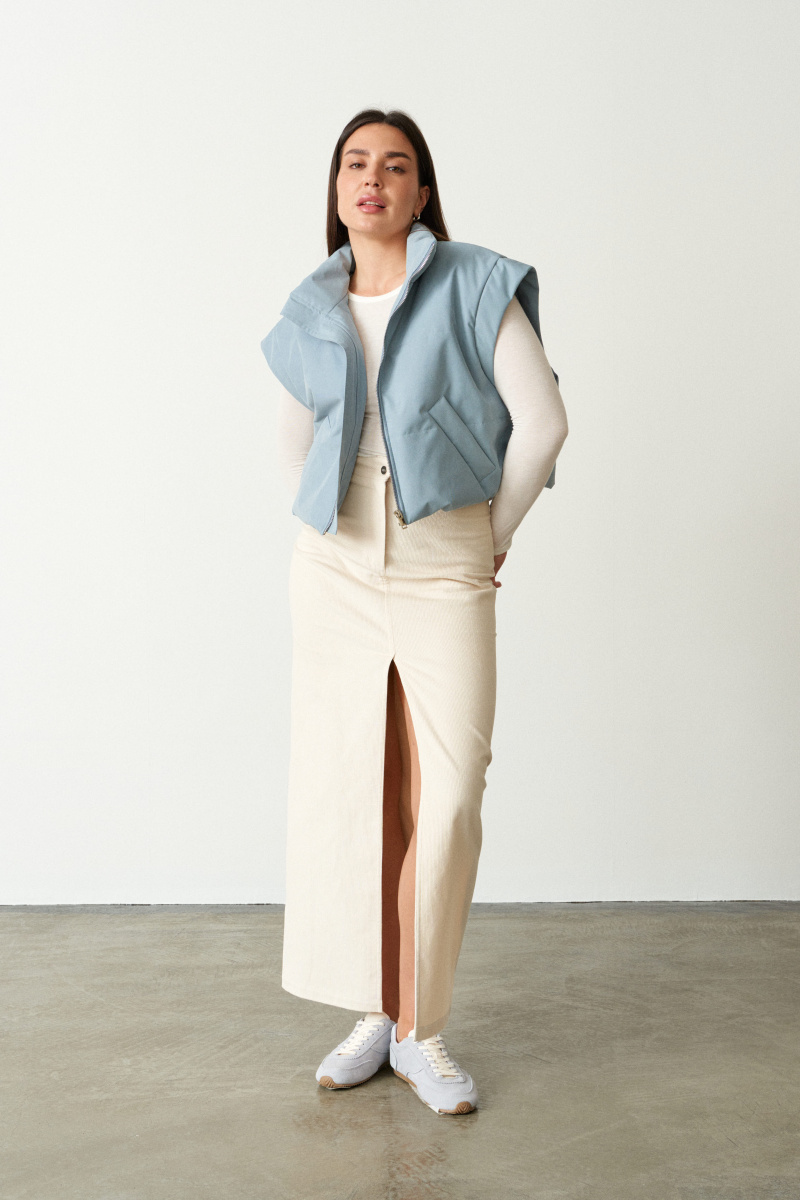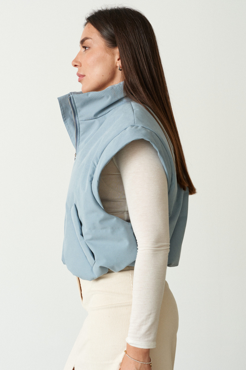 Размер жилетки единый. Параметры модели: рост 174 см, обхват груди 87 см, обхват талии 71 см, обхват бедер 101 см.