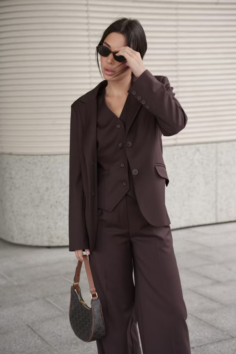 Можно носить как в паре с брюками, а можно как самостоятельную единицу. Крой жакеты слегка облегающий. Подходит для создания офисных, повседневных и вечерних образов