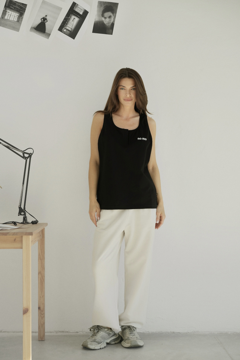 Майка-алголичка из хлопка. Идеальна по качеству и пошиву. Преимущества данной модели в свободных проймах и свободном силуэте, благодаря которым чувствуешь себя легко, не скованно и стильно, а материал хлопок приятно садится к телу и не меняет свою форму при носке. Отличная база в Ваш гардероб.