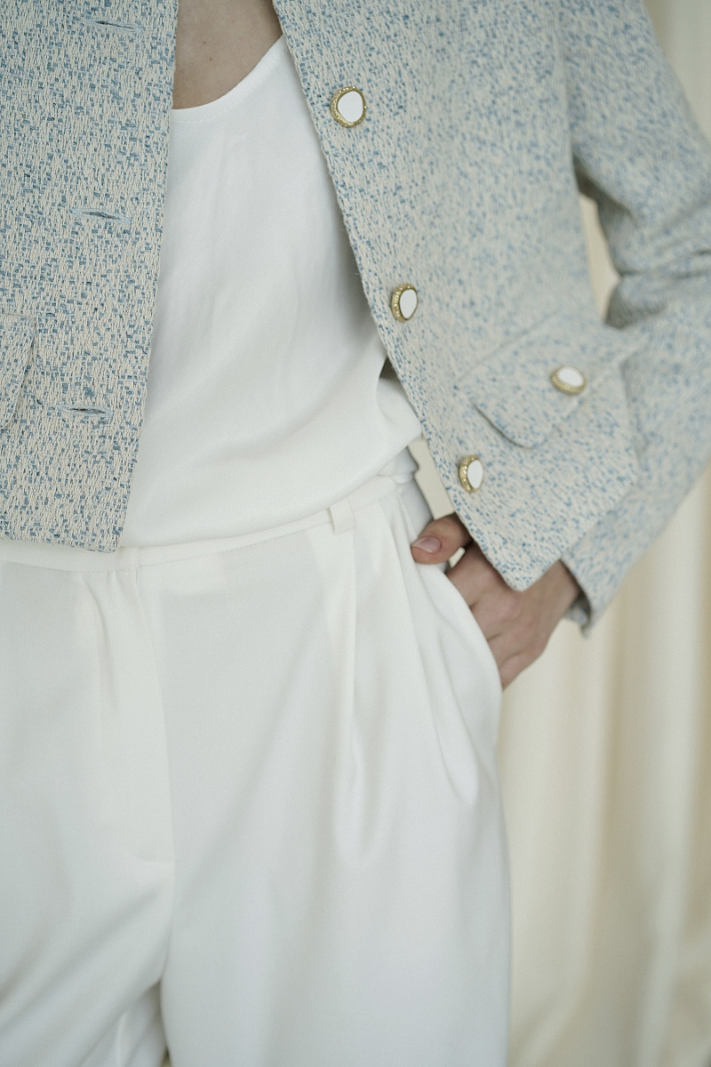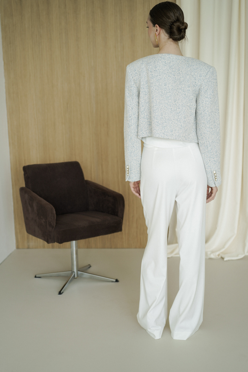 Белые женские брюки на защипах — это элегантный и современный предмет гардероба, который отлично подойдет для офисных и повседневных образов. За счет защипов по бокам они имеют аккуратную посадку и создают эффект рельефа, подчеркивая фигуру. Изготовленные из качественных тканей, эти брюки обеспечивают комфорт и свободу движений. Их универсальный дизайн легко сочетается с различными топами, блузками и жакетами, позволяя создавать стильные и гармоничные образы на любой случай.