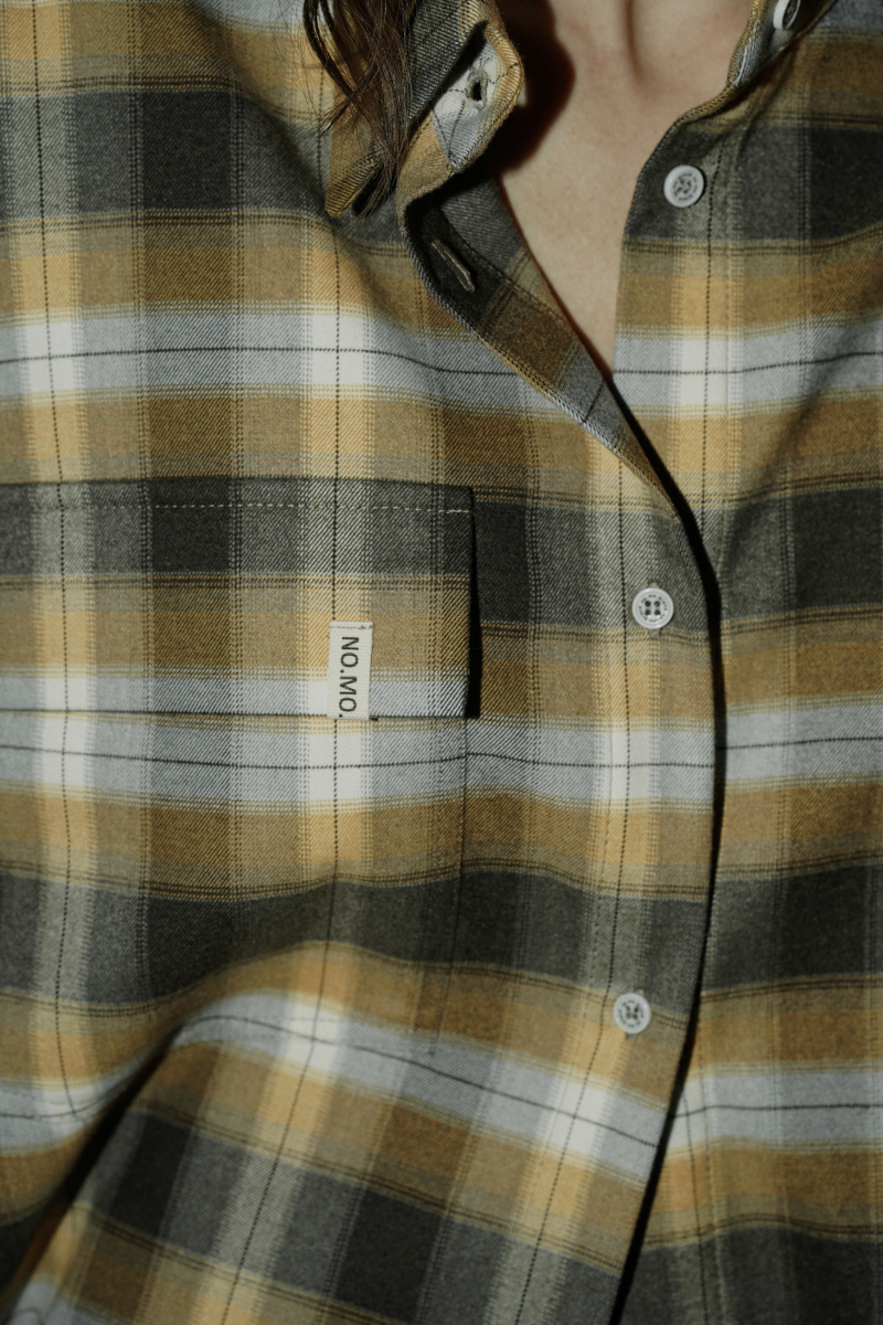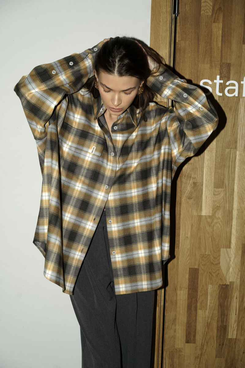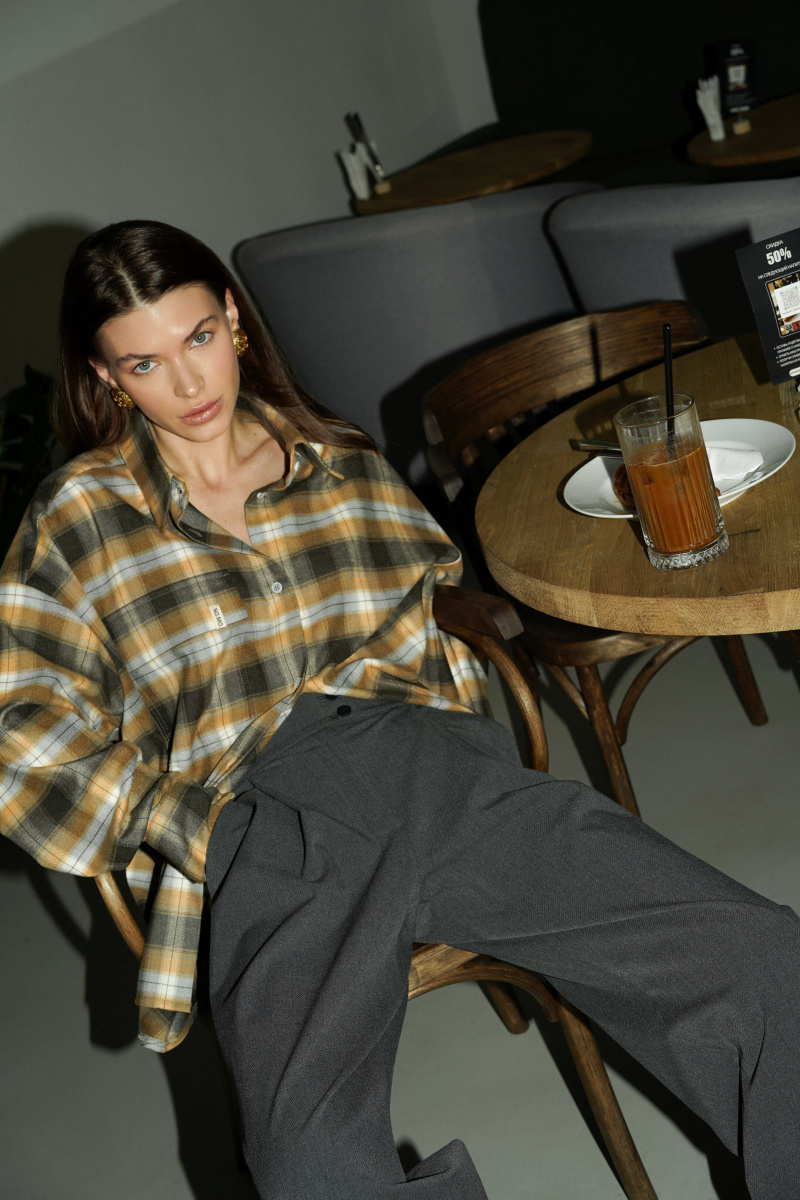 Клетка - один из самых стильных принтов этого сезона. Идельаные оттенки горчицы с молоком и серым собраны в нашей рубашке. Модель оверсайз идельно подойдет в любой гардероб и под любой низ. Утепленная модель отлично подходит для сезона осень/зима. Брендированная чёрная фурнитура.