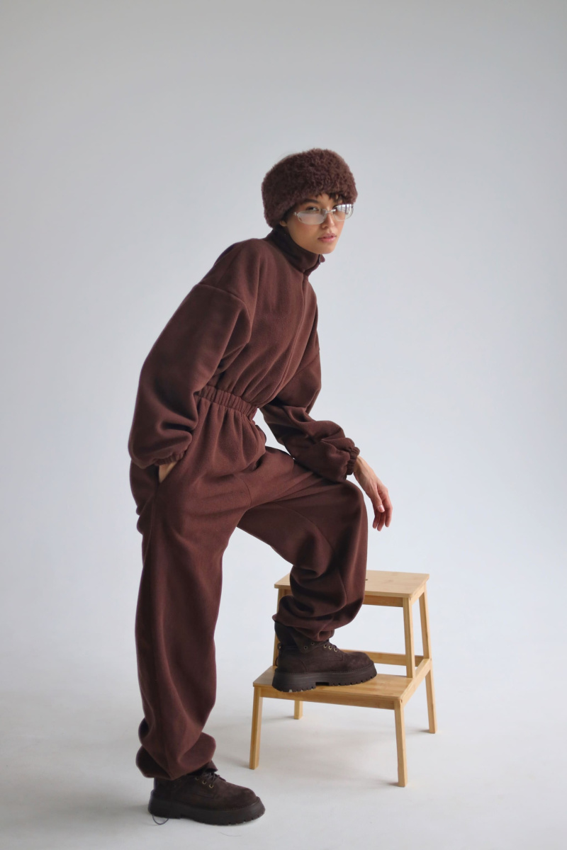 Чёрный цвет для вечера, коричневый для дня. Выбирайте свой оттенок власти. Брюки на высокой посадке выполнены из экокожи на замше.