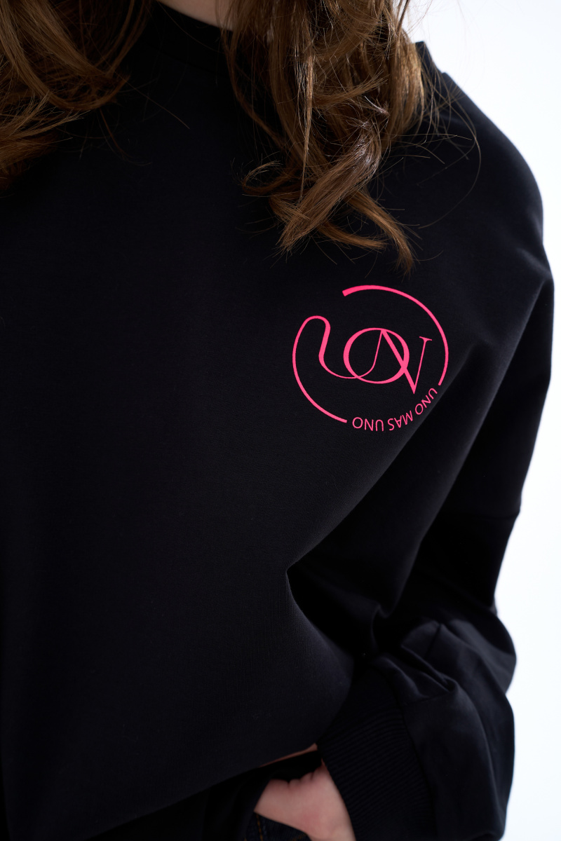 На лонгслив нанесен черно-белый выпуклый логотип.