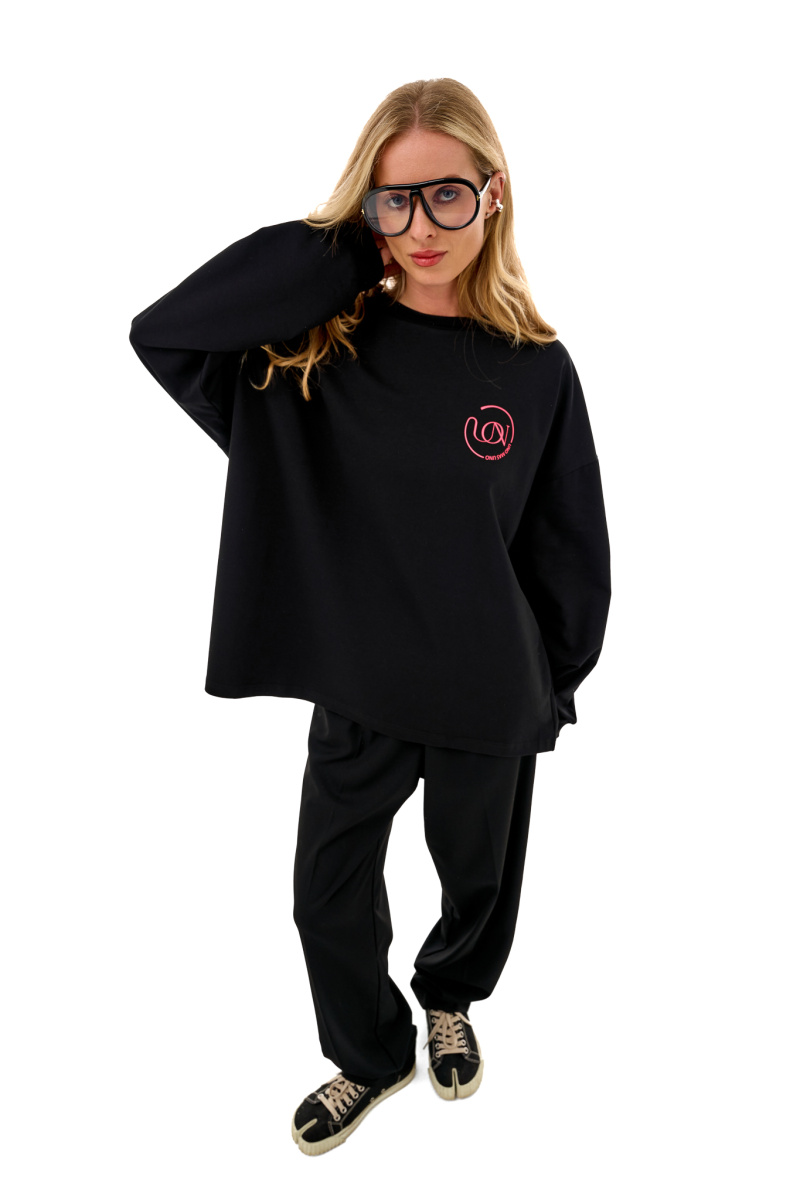 Черный базовый лонгслив измененной модели - теперь с манжетами!