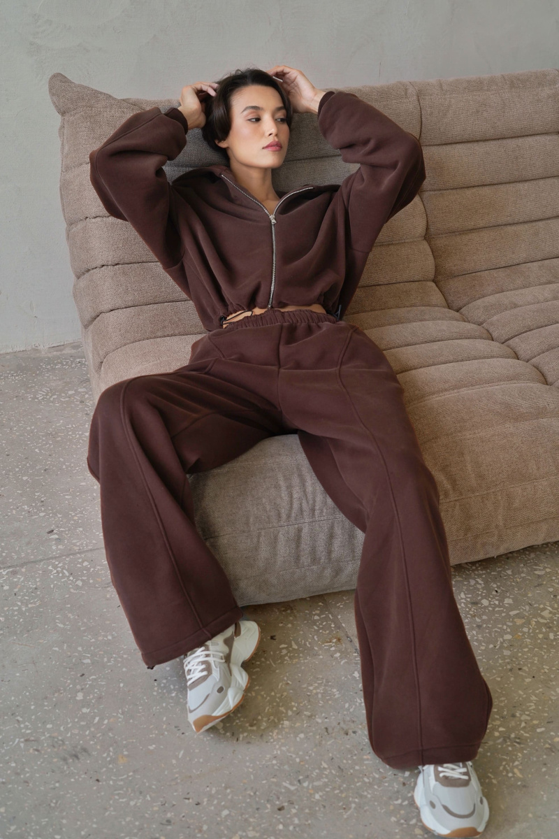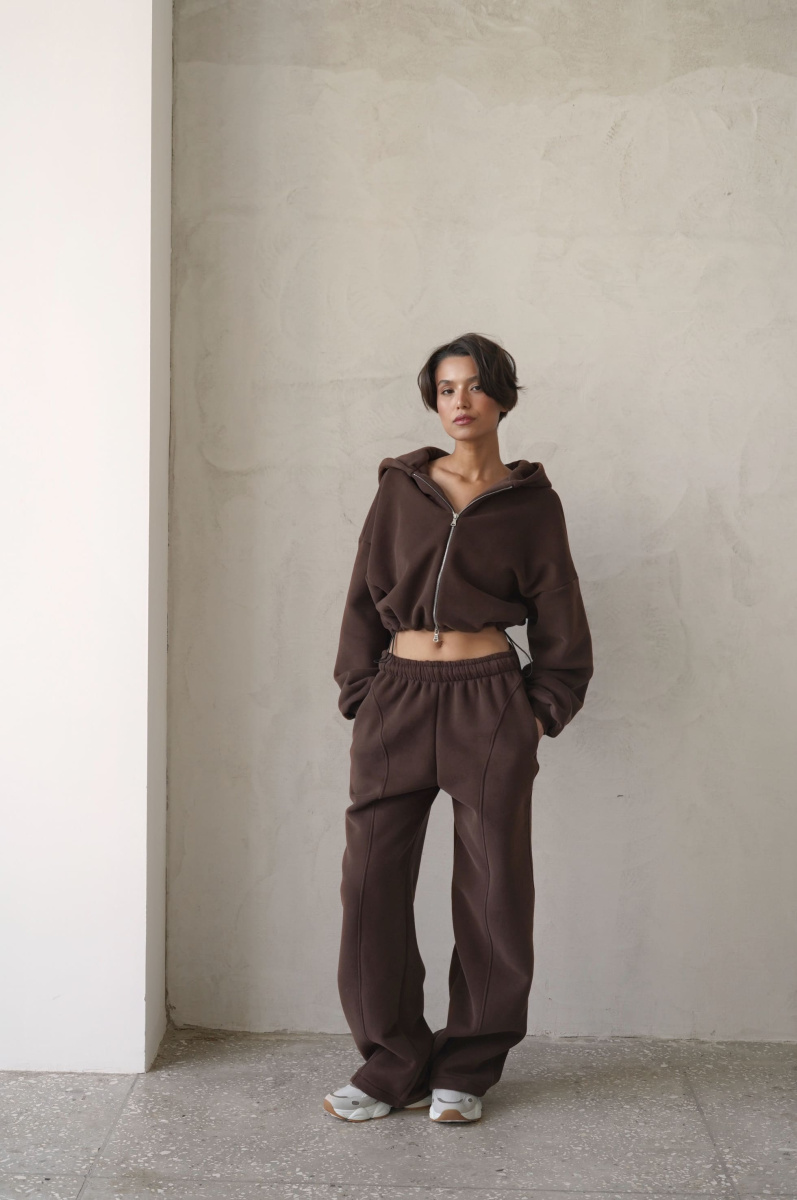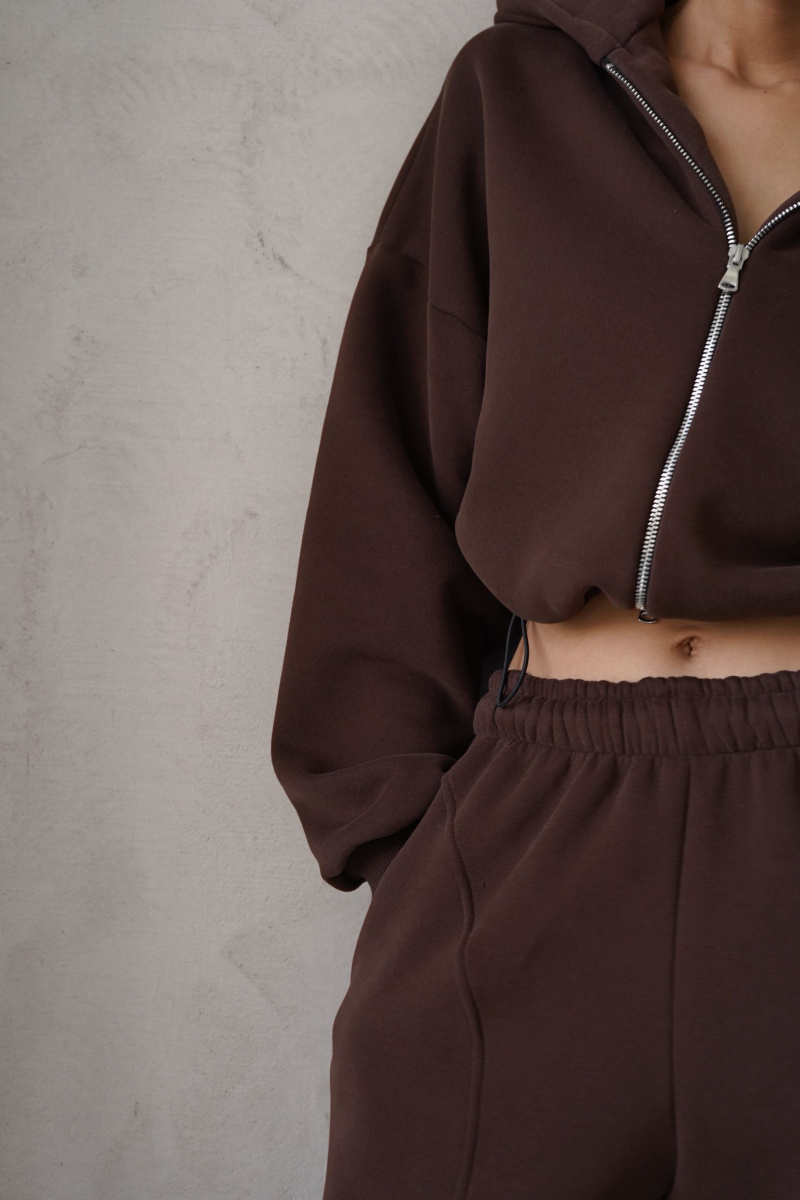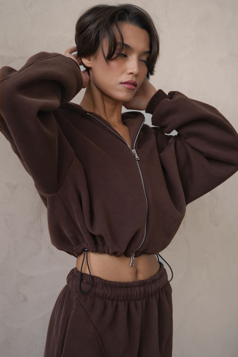 Укороченный крой подчеркивает фигуру, а мягкий начес внутри дарит тепло и уют в прохладные дни. Глубокий объемный капюшон защищает от ветра, а аккуратные манжеты и эластичный регулируемый пояс обеспечивают идеальную посадку. Универсальный дизайн позволяет сочетать худи с джинсами, спортивными штанами или юбкой, создавая непринужденный, модный образ. Стильный минимализм бренда TIME 4:13 делает кроп-худи незаменимым в повседневном гардеробе
