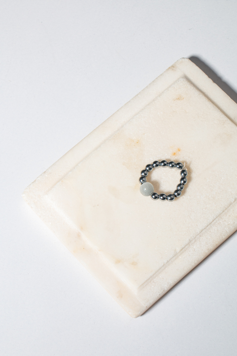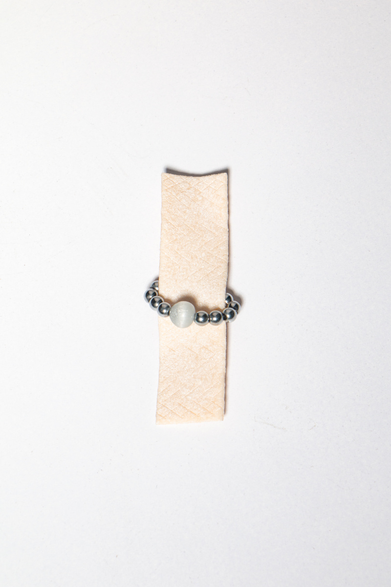 Маленькая деталь, которая всегда приковывает внимание. Минималистичное кольцо из гематита с камушком кошачьего глаза.