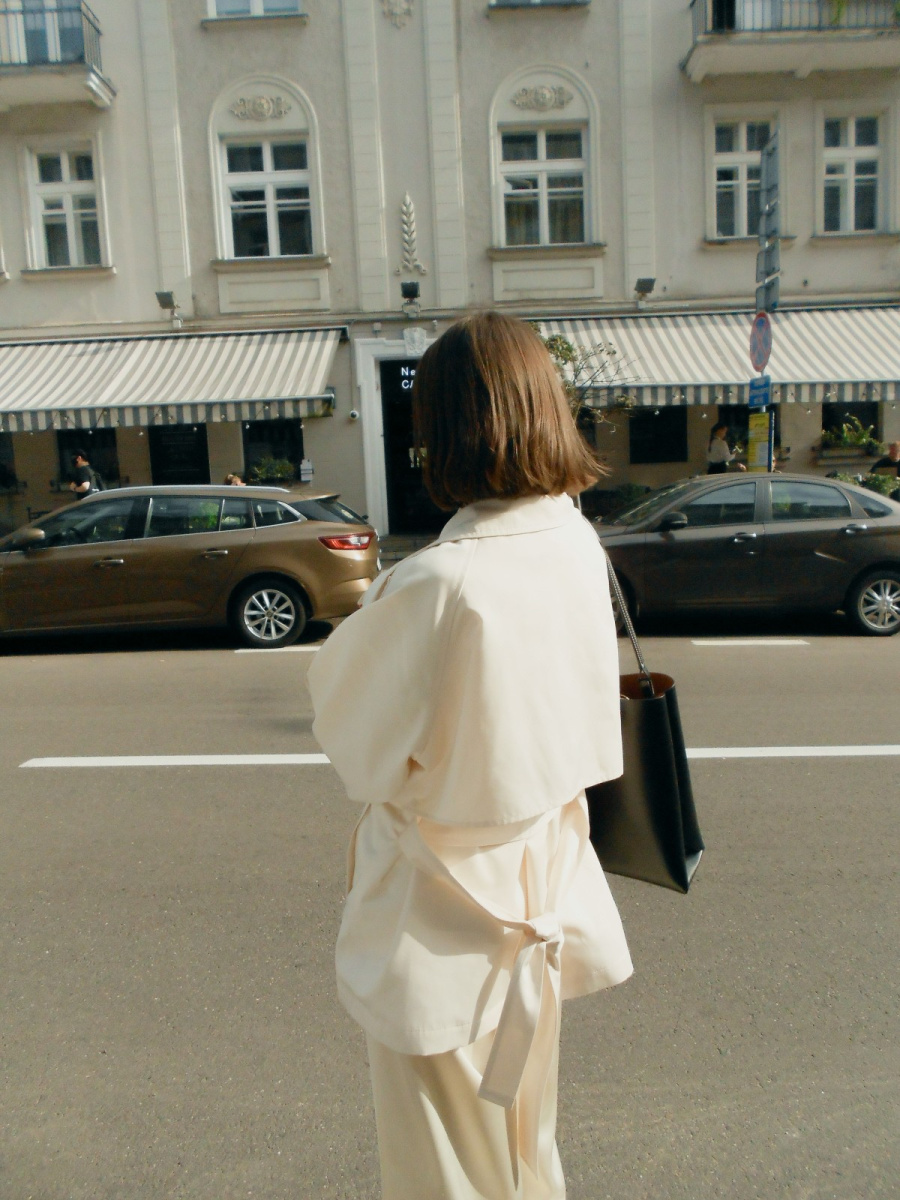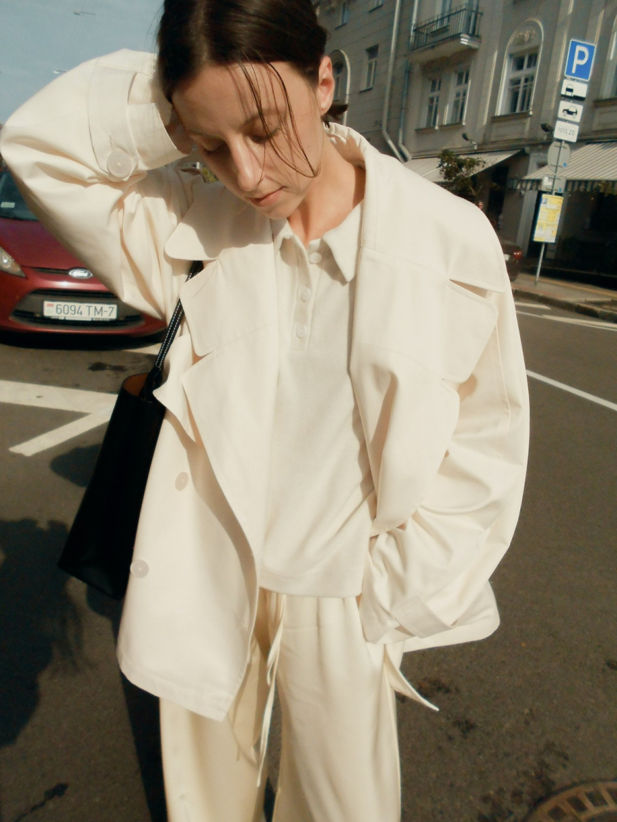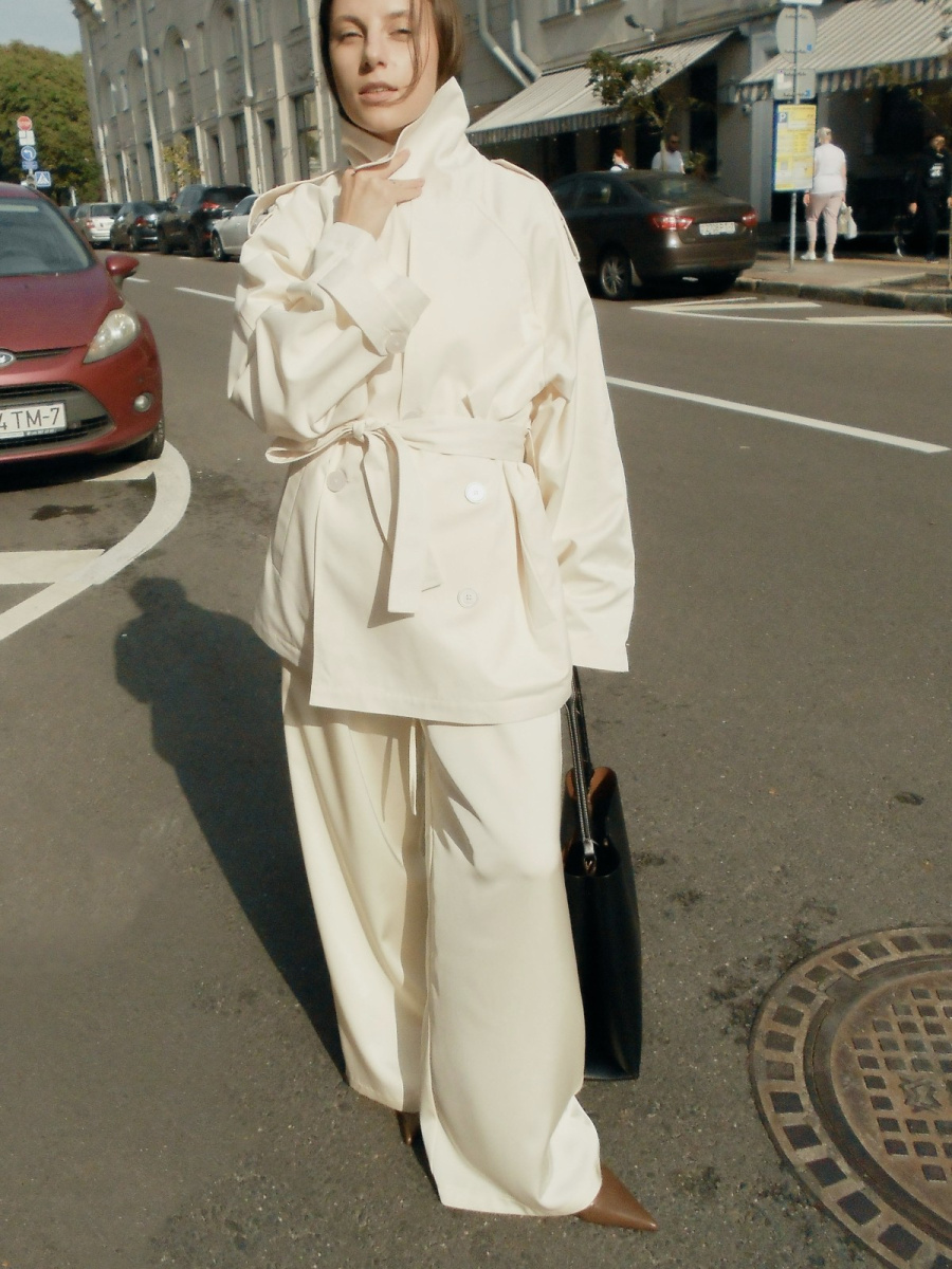 Новинка осенней коллекции бренда — тренч CROP в молочном цвете.