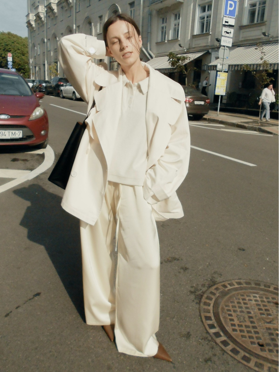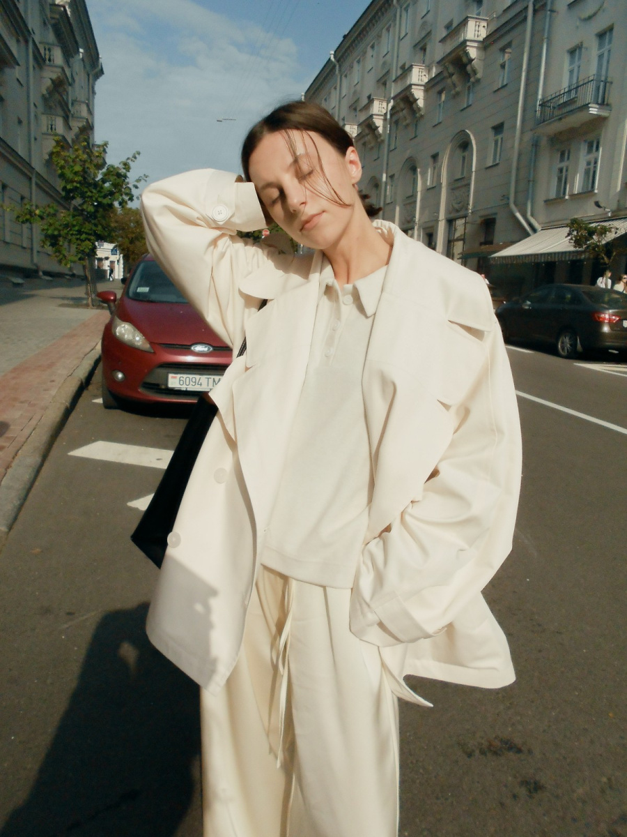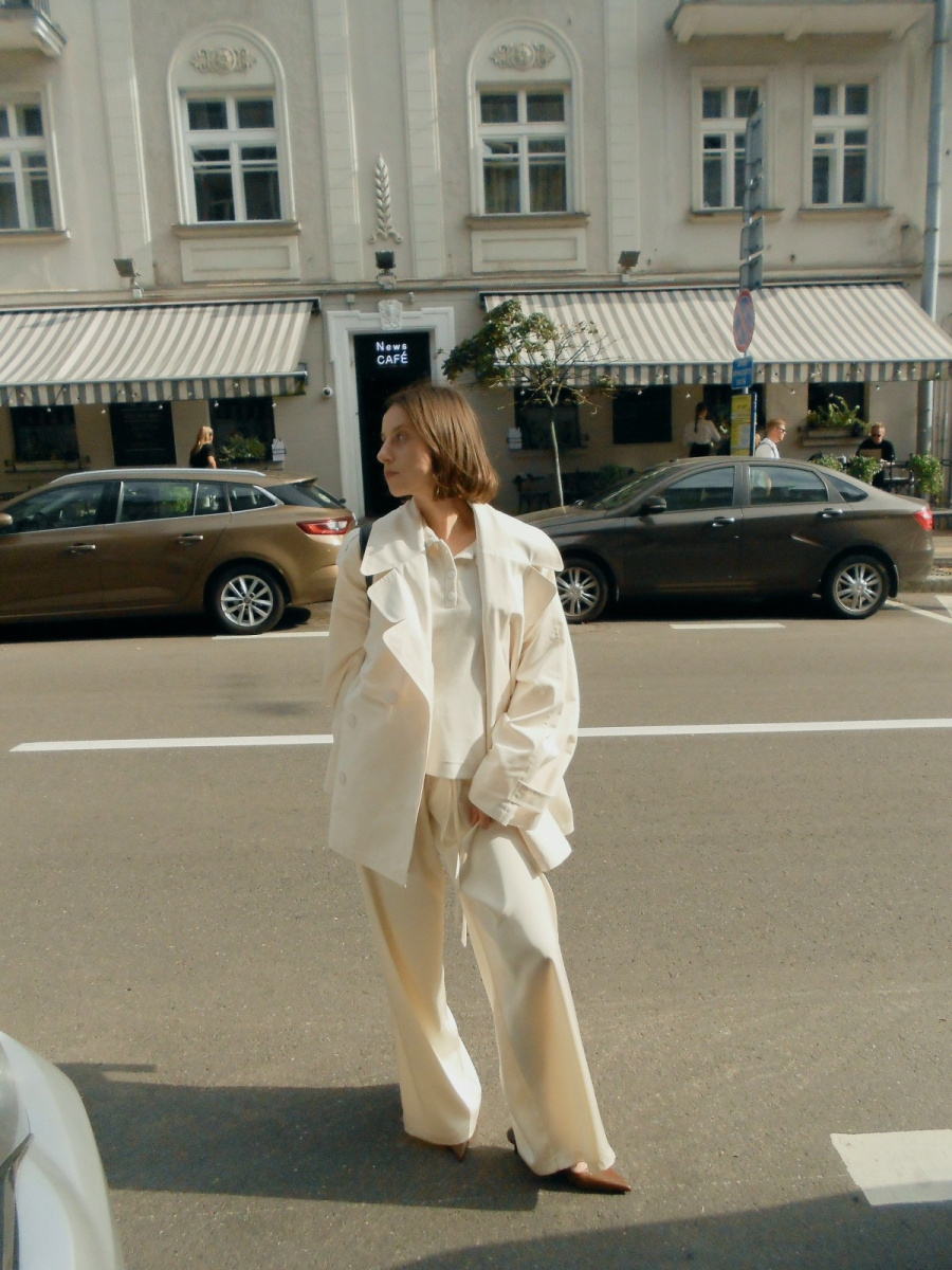 Новинка осенней коллекции бренда — тренч CROP в молочном цвете.