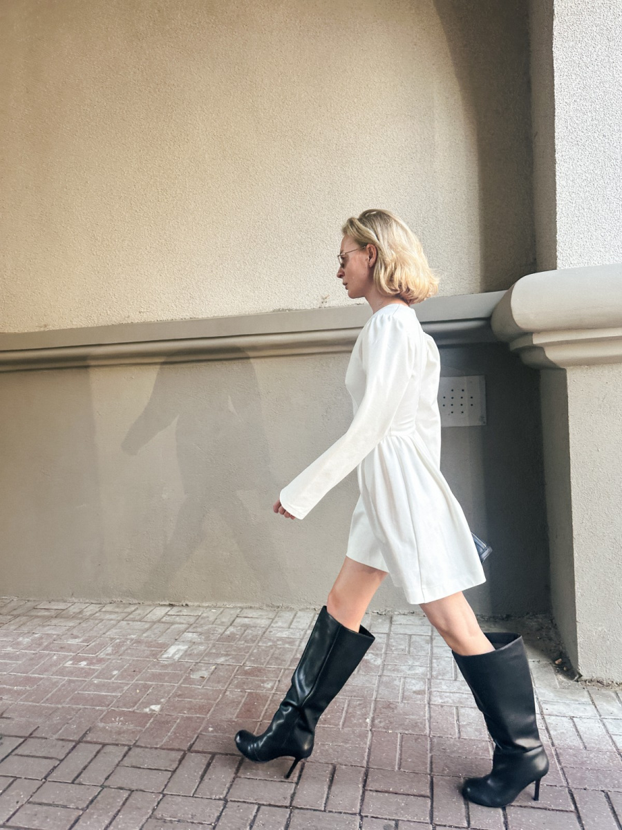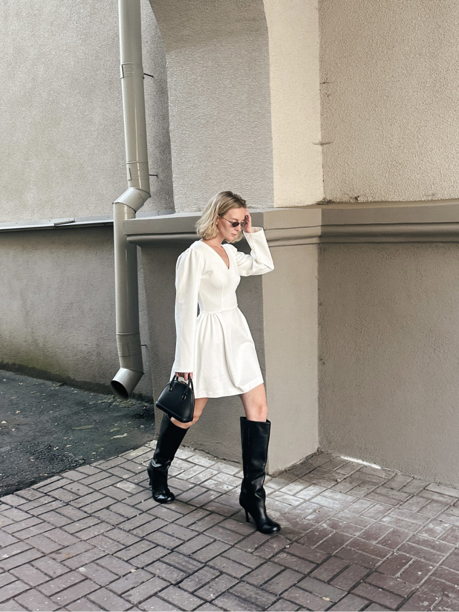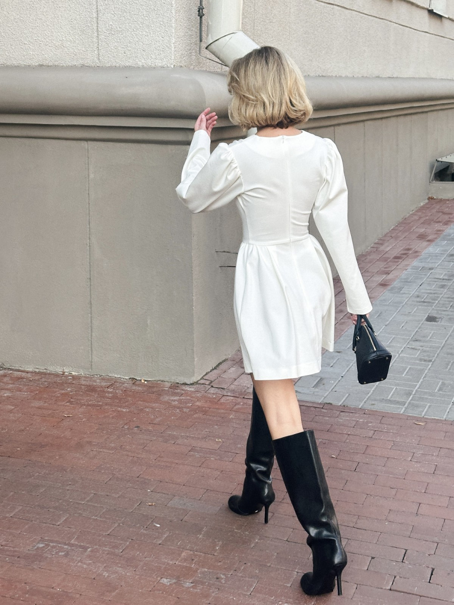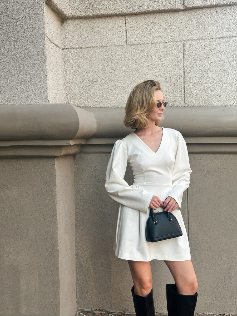Новинка осенней коллекции бренда — молочное платье COCO c акцентированной линией плеча.
