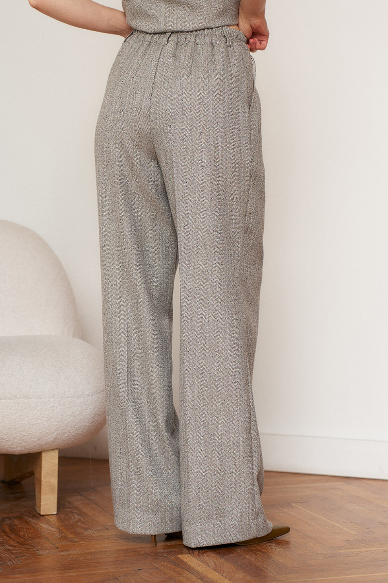 Палаццо с идеальной посадкой и с очень обильной шириной, которая вырисовывает завораживающую игру ткани при движении. Помним, данная модель брюк - это уже база гардероба, вписывающаяся и на выход, и в повседневность.