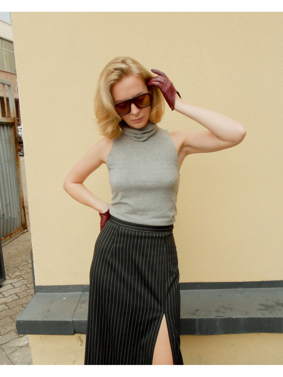 Идеально сочетается с брюками с завышенной талией, юбками мини и жакетами в стиле oversize.