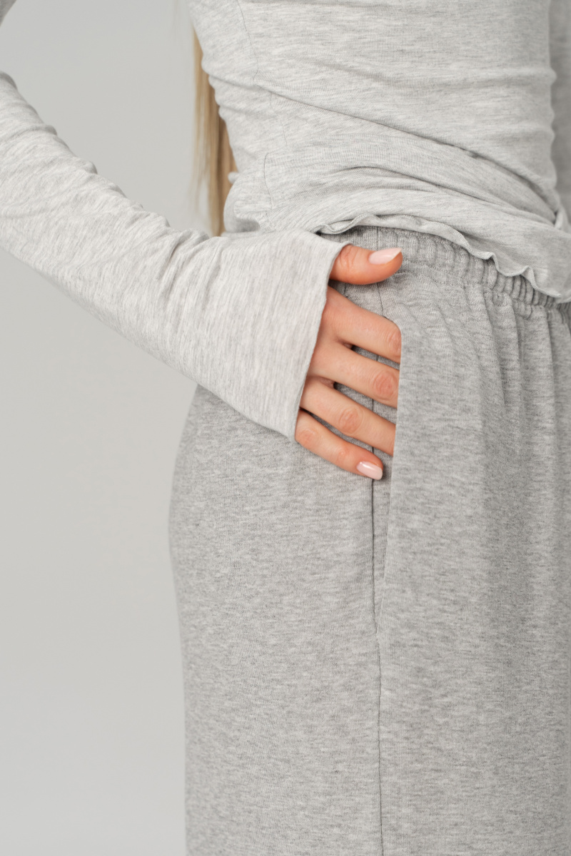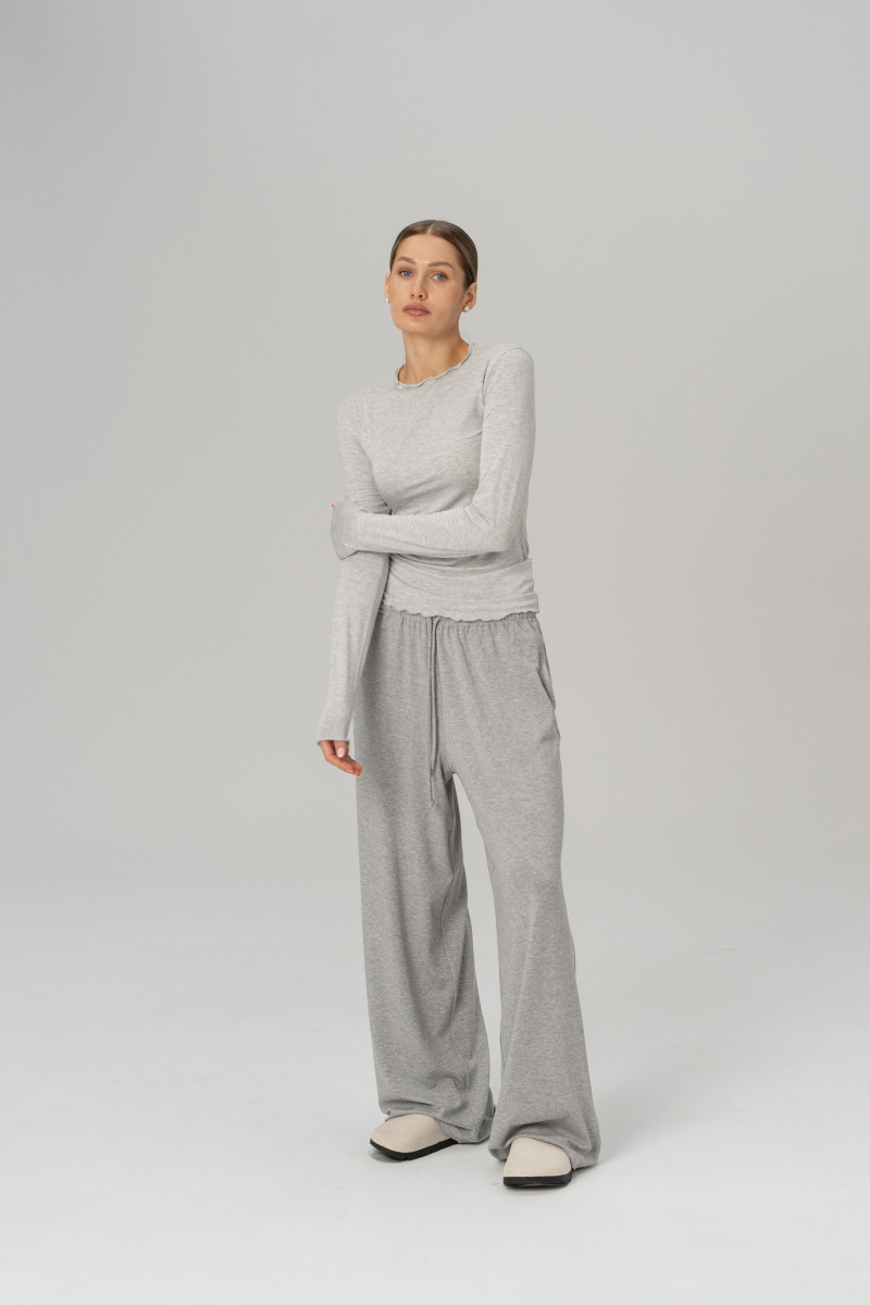 Расслабленные трикотажные брюки. Изготовлены из нежного лиоцелла. За счет добавления тонких нитей эластана изделие хорошо тянется и струится, повторяя каждое движение тела. Низкая пиллингуемость. Аксессуары и другие предметы могут оставлять пилли
