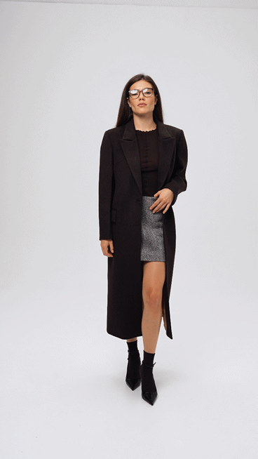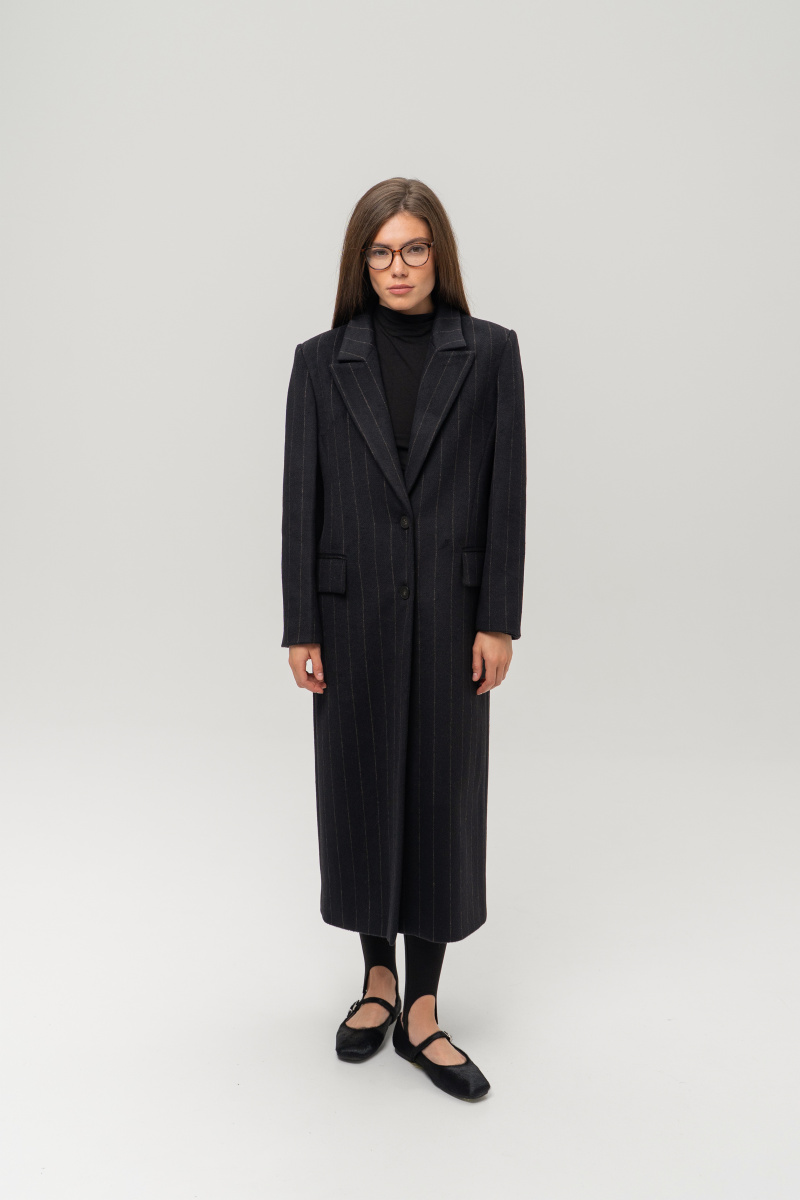 Пальто плотное и держит форму, в то же время обладая пластичностью. Характерными особенностями являются: расширенный рукав, глубокие карманы и классическая двубортная застежка.
