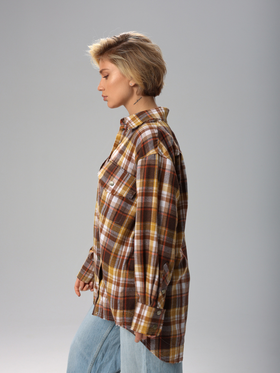 Рубашка HEART оверсайз силуэта со спущенной линией плеча и классическим рубашечным воротником. Фигурная линия низа прекрасно дополняет расслабленный дизайн рубашки. Свободный силуэт не сковывает движения, поэтому рубашку комфортно носить как второй слой.