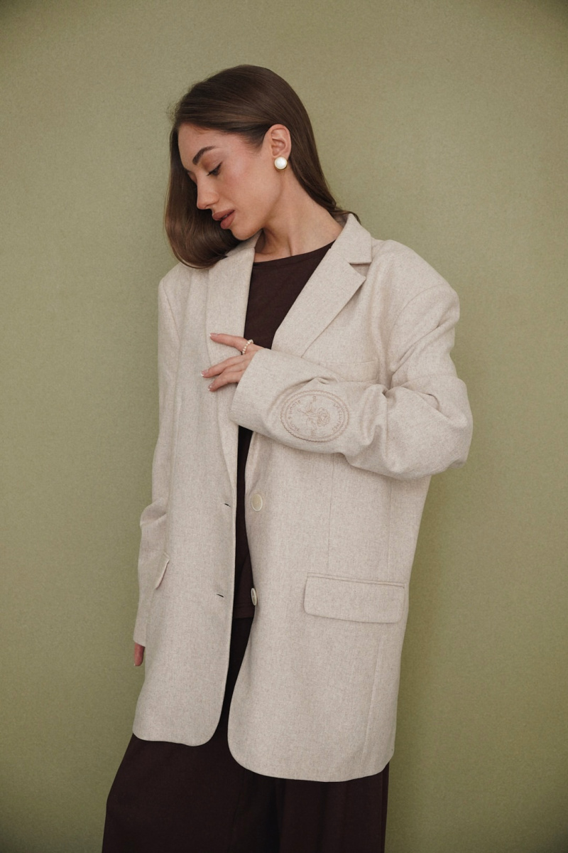 Свободный силуэт в сочетании с мягкой линией кроя создаёт стильный силуэт, а лаконичная вышивка на рукаве подчёркивает индивидуальность. Универсальная база для любых сочетаний.