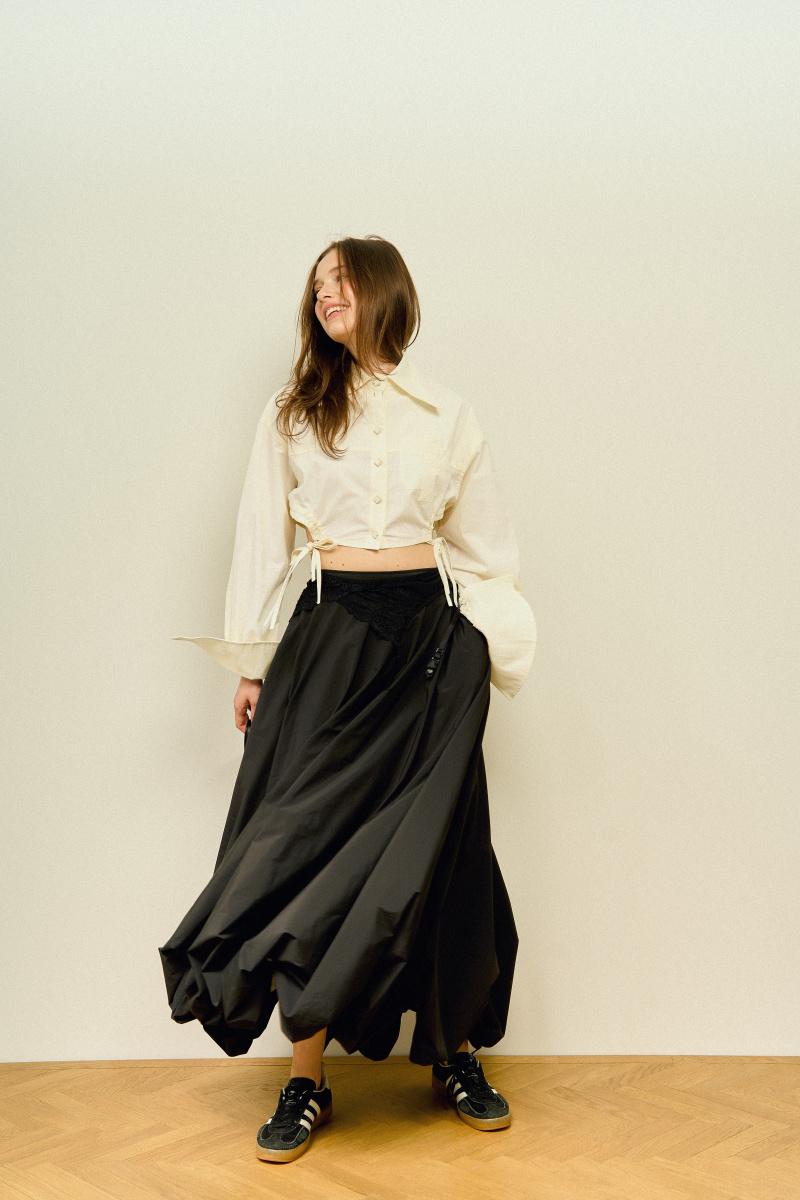 Идеальный сливочный цвет в сочетании с чем угодно: джинсами, юбкой, платьями. А ещё обожаем её за вариативность: носим как в застегнутом виде, так и в открытом.