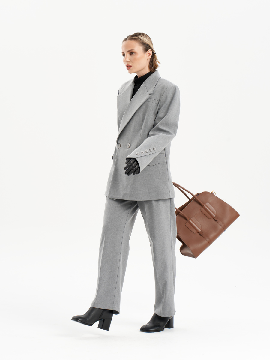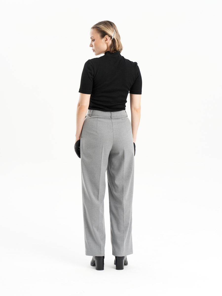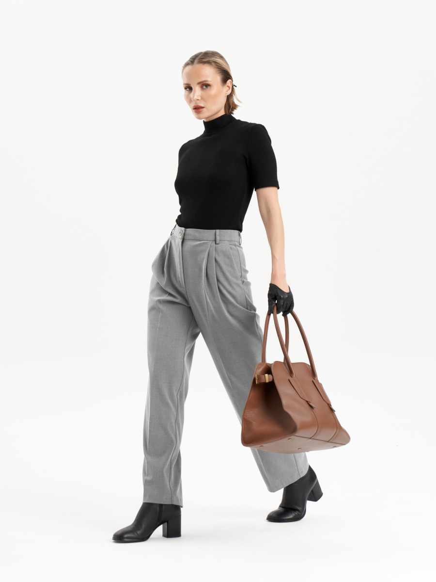 Брюки женские прямого силуэта, длина до щиколотки . По линии талии переда 2 защипа, заутюженная стрелка, боковые карманы. Застёжка на молнию (с гульфиком), Пояс на петлю пуговицу.