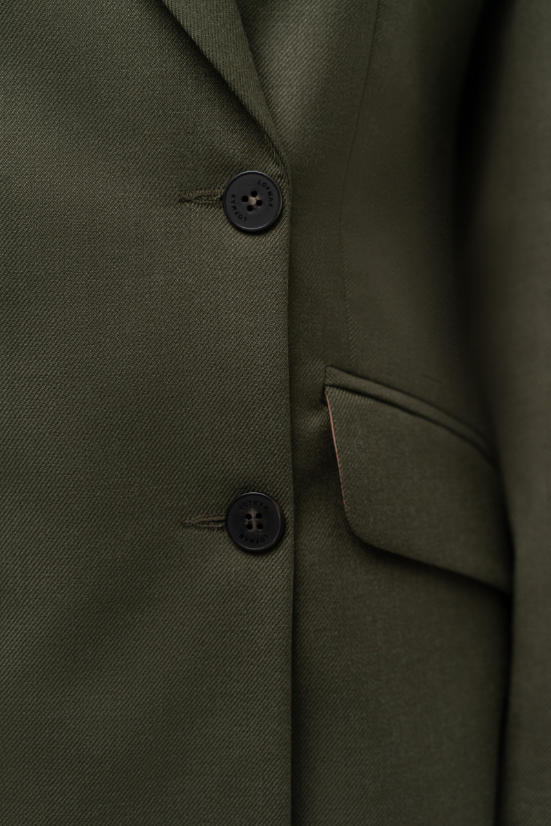 Основная ткань: 55% шерсть, 45% полиэстер. Подкладка: 55% вискоза, 45% полиэстер