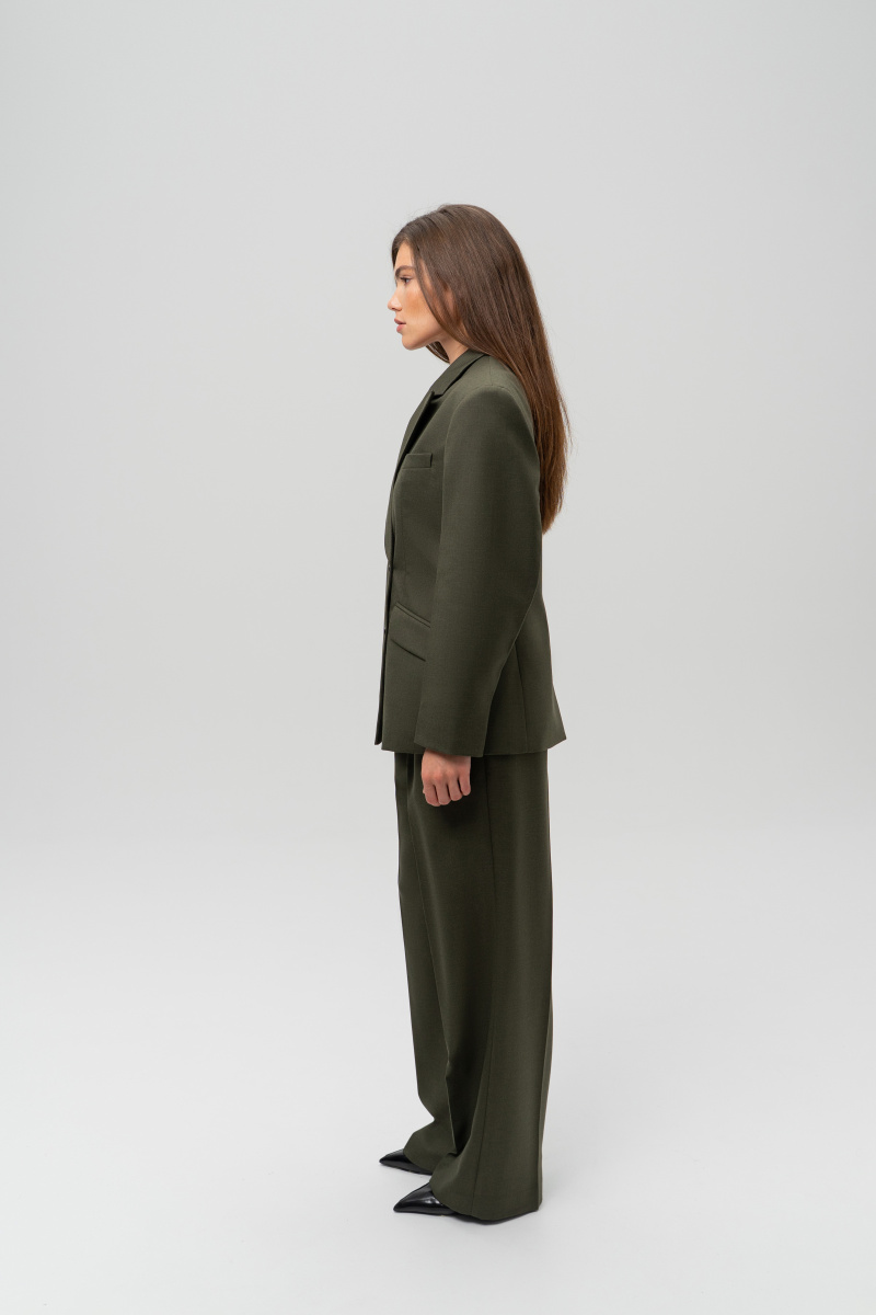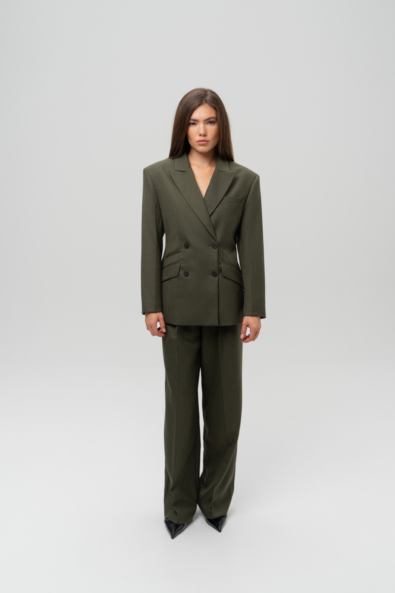 Двубортный приталенный жакет из пластичной костюмной шерсти с фигурной линией рукава. Безупречная посадка, отложной воротник с лацканами, застежка на брендированные пуговицы. Глубокие карманы с клапаном. Модель представлена в двух смежных размерах: XS/S (меньше) и М/L (больше). Жакет составит идеальный образ с прямыми брюками в тон.