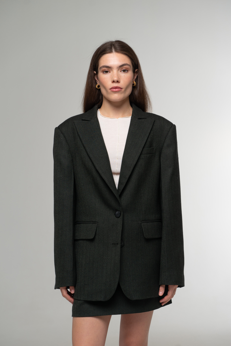 Основная ткань: 62% шерсти, 38 % полиэстер Подкладка: 55% вискоза, 45% полиэстер