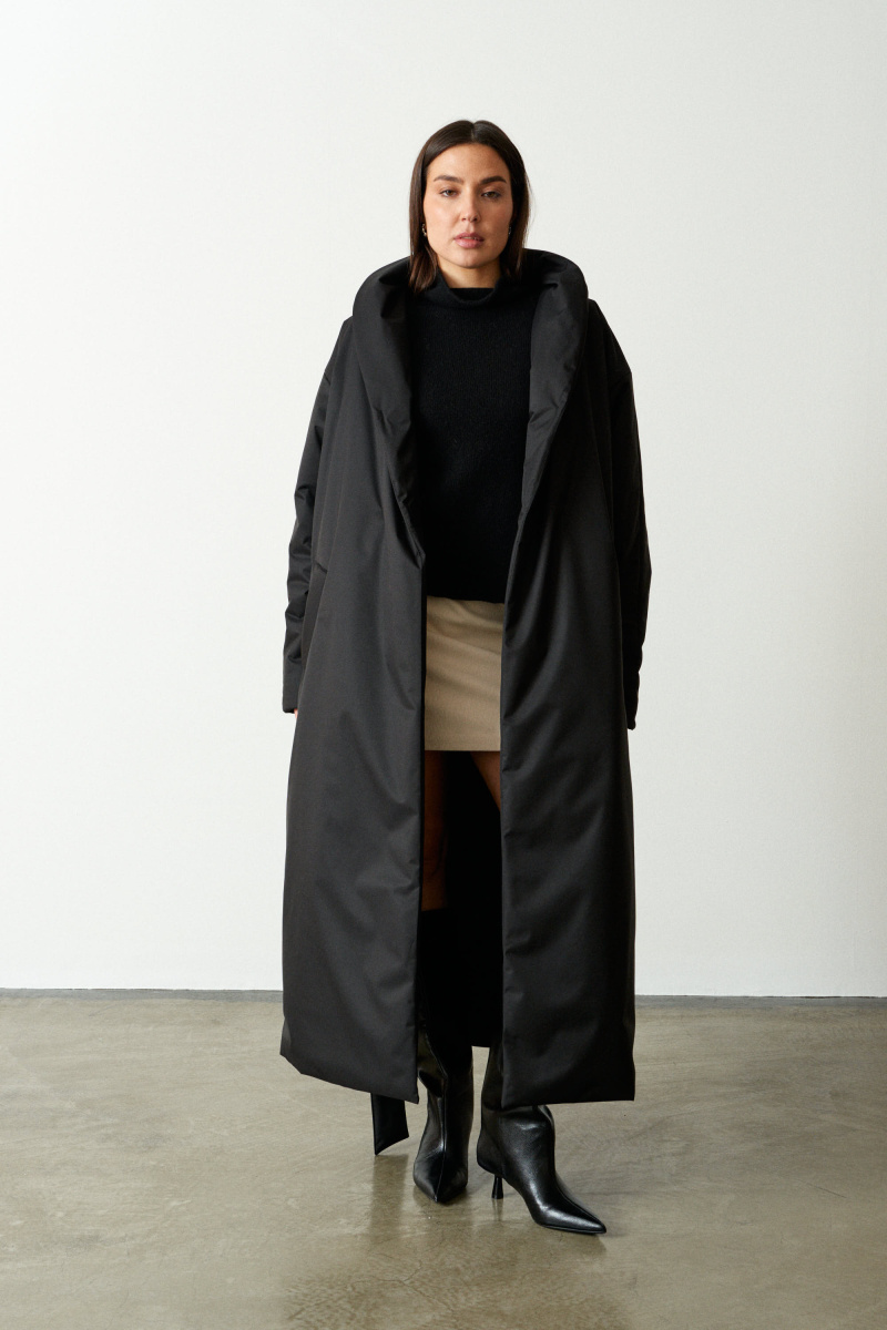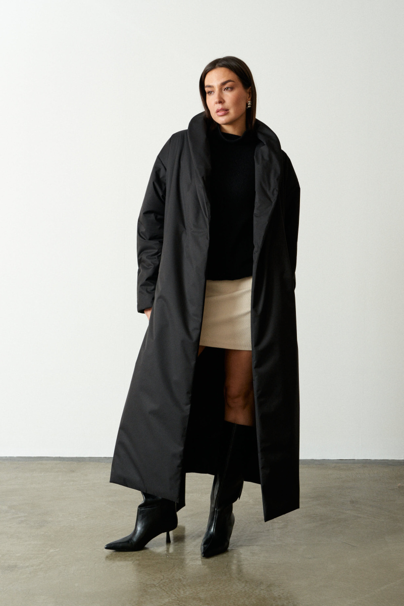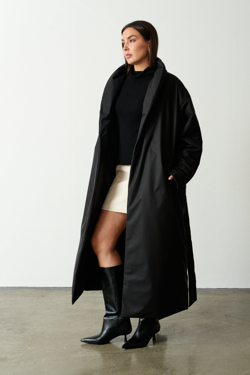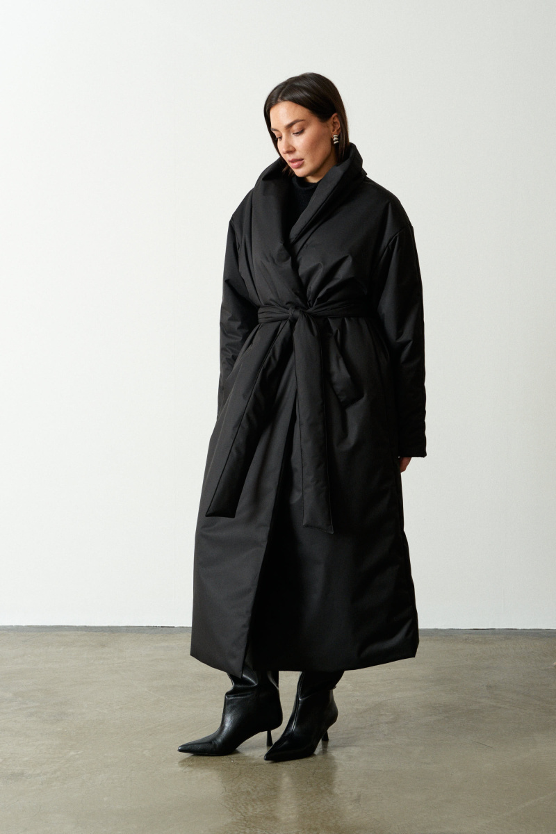 Длинное пальто-халат прямого кроя с поясом, красиво подчеркивающим талию. Выполнено из водоотталкивающей непродуваемой, но обладающей высоким воздухообменом мембраны и бельгийского наполнителя isosoft. Подходит до - 10°С. Воротник-стойка защищает от ветра и холода.
