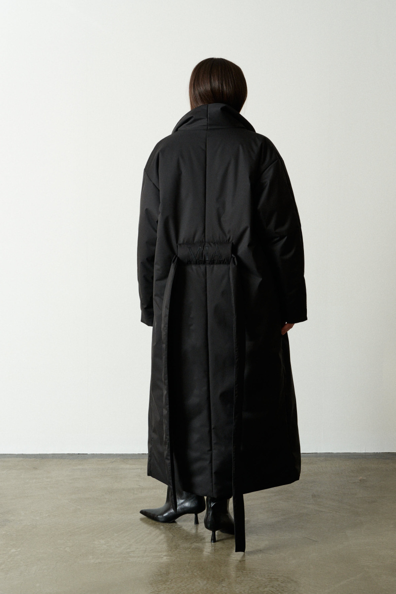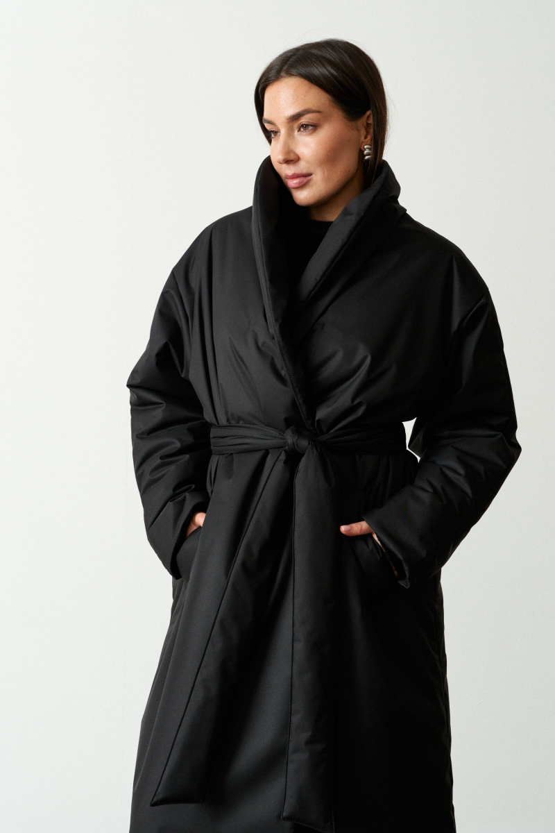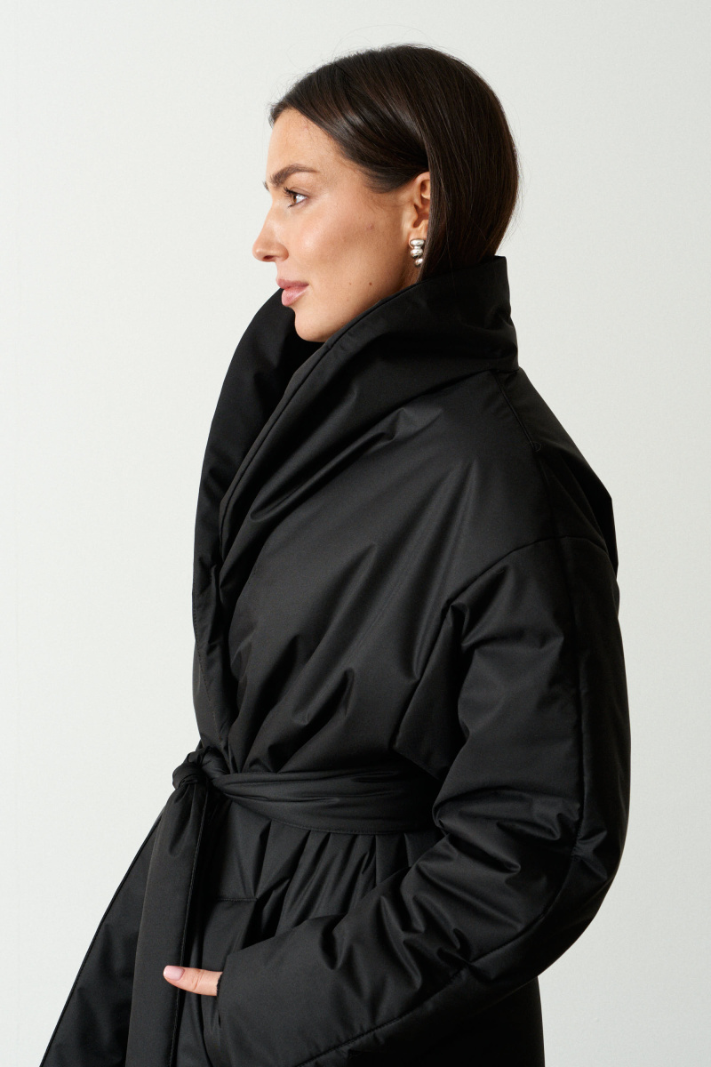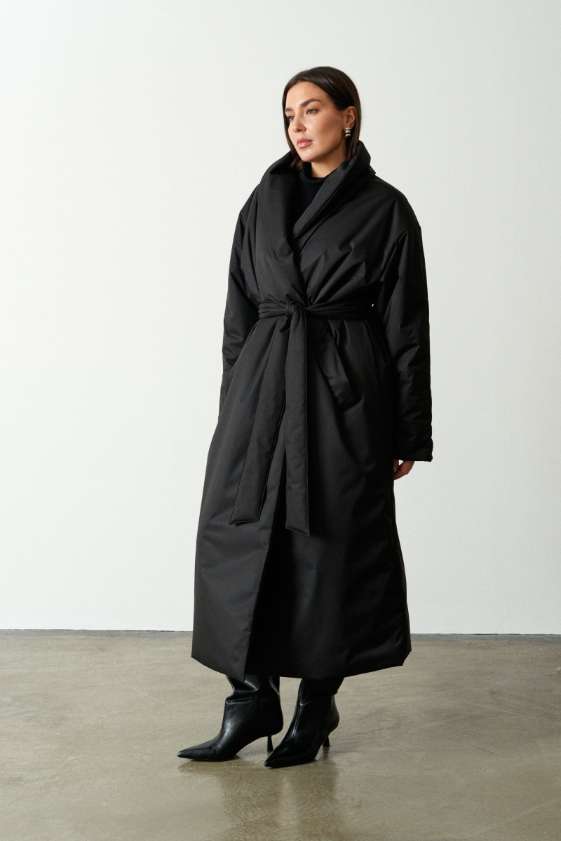 Длинное пальто-халат прямого кроя с поясом, красиво подчеркивающим талию. Выполнено из водоотталкивающей непродуваемой, но обладающей высоким воздухообменом мембраны и бельгийского наполнителя isosoft. Подходит до - 10°С. Воротник-стойка защищает от ветра и холода.