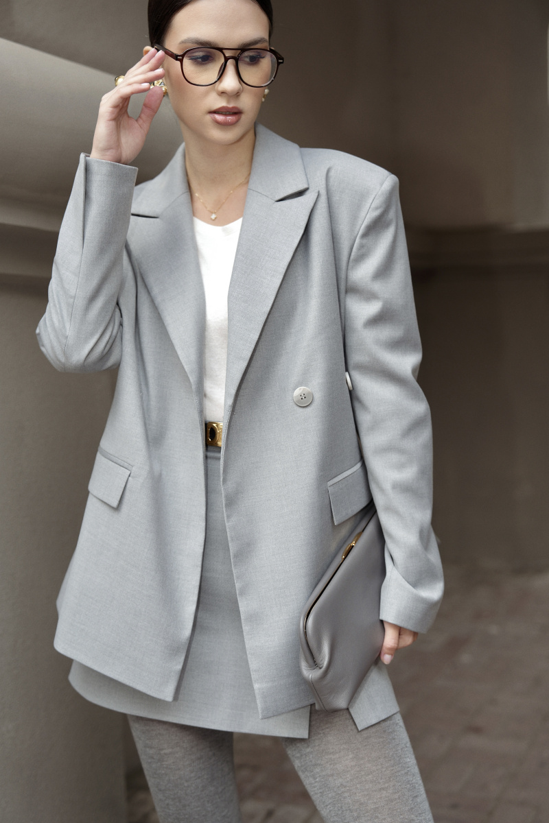 Серый приталенный женский жакет — это элегантный и универсальный элемент гардероба, идеально подходящий для деловых и повседневных образов. Благодаря аккуратному приталенному крою он подчеркивает фигуру и создает женственный силуэт. Изготовленный из качественных материалов, жакет обладает приятной текстурой и комфортной посадкой. Его классический дизайн легко сочетается с брюками, юбками, блузками и платьями, позволяя создавать стильные и гармоничные образы на любой случай.
