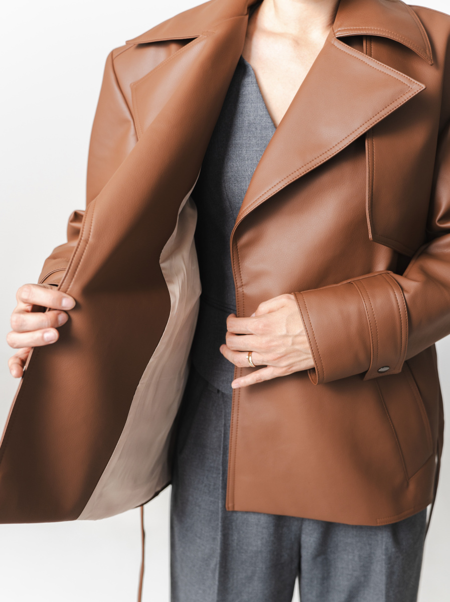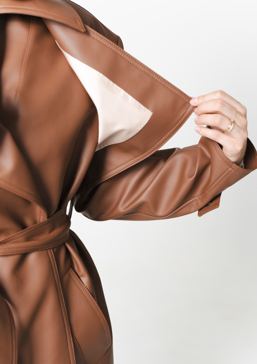 Это — осознанный шик. Выбор в пользу инновационных материалов, где тактильное наслаждение и безупречная этика переплетаются с вневременным дизайном. Вы инвестируете не в тренд, а в ощущение: легкий шелест на ходу, благородный блеск, который говорит о вашем вкусе без единого слова, и уверенность в том, что ваш образ безупречен в любую погоду.