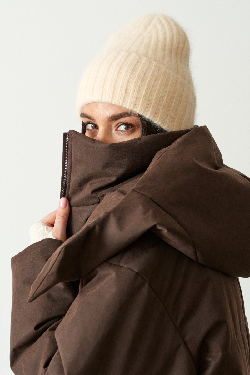 Пальто прямого кроя,  со спущеным плечом. Выполнено из водоотталкивающей непродуваемой, но обладающей высоким воздухообменом мембраны и бельгийского наполнителя isosoft. Подходит до - 20°С.