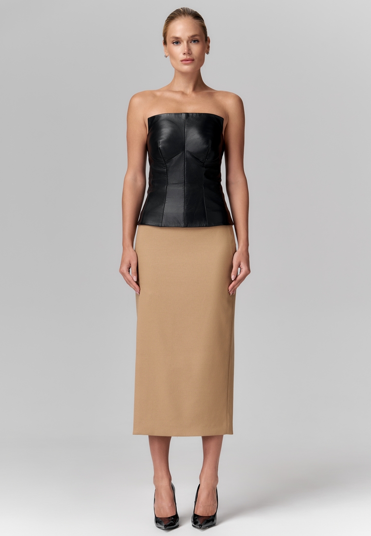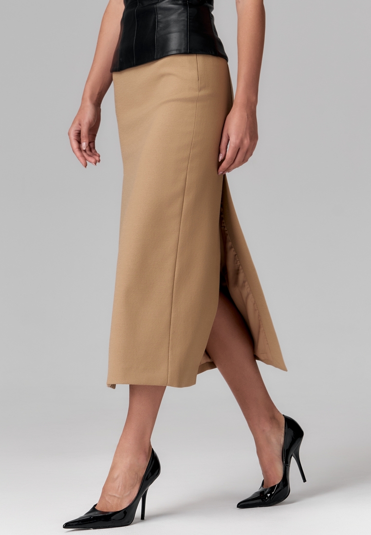Юбка из премиум полотна с шерстью и вискозой в составе, длины миди, прямая, с высокой талией, с разрезами спереди и сзади для лёгкости и динамики. На подкладке.
