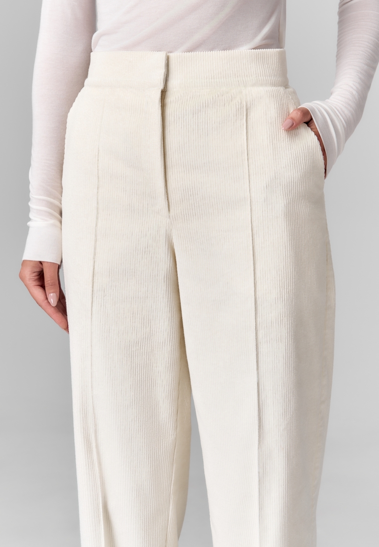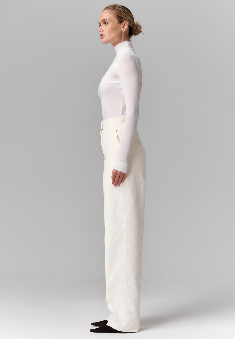 Брюки с наклонными карманами – идеальный компаньон для жакета из вельвета.
