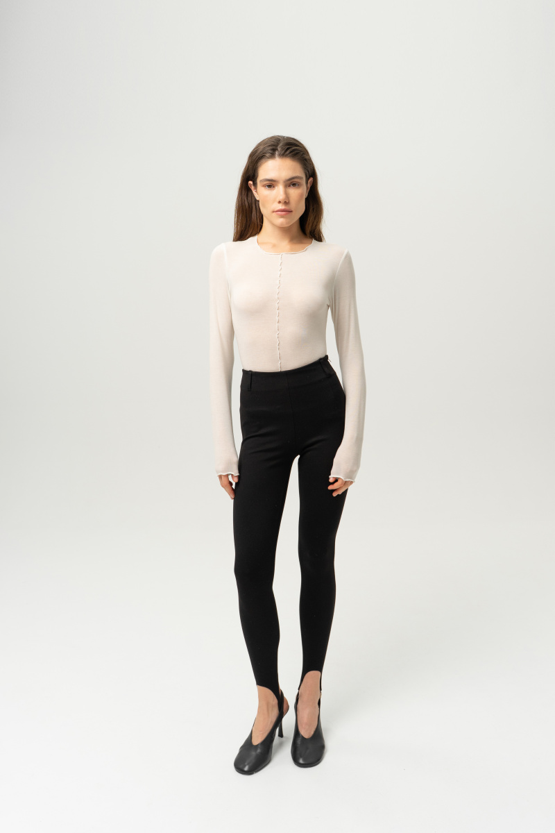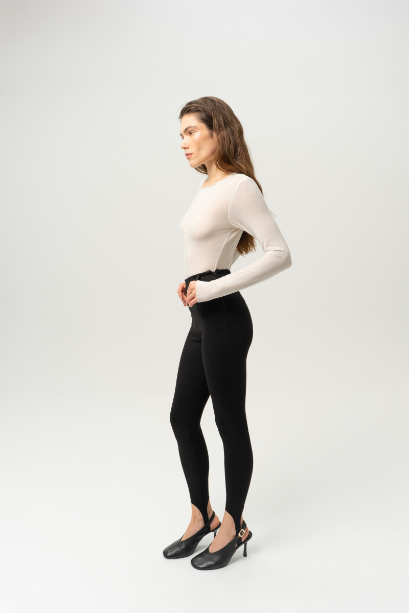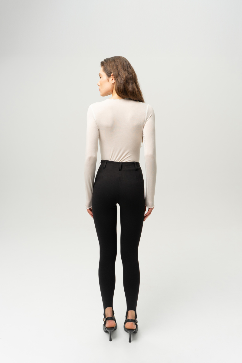 Облегающие черные леггинсы со штрипками станут безупречной базой в осенне-зимний сезон. Плотные и эластичные, они не будут деформироваться в процессе носки, обладают хорошей износостойкостью. На поясе изделия мы предусмотрели шлевки для ремня. Благодаря вискозе в составе, изделие поддерживает комфортную температуру тела.