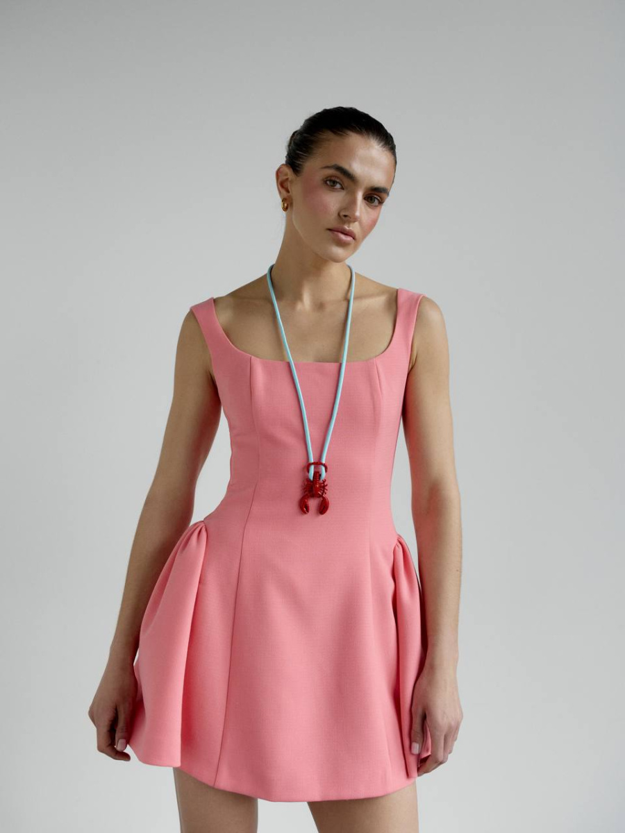 Создаем праздничное настроение яркими деталями: структурное платье с идеальным вырезом и яркий лобстер – образ, который достоин главной роли в вашем гардеробе.