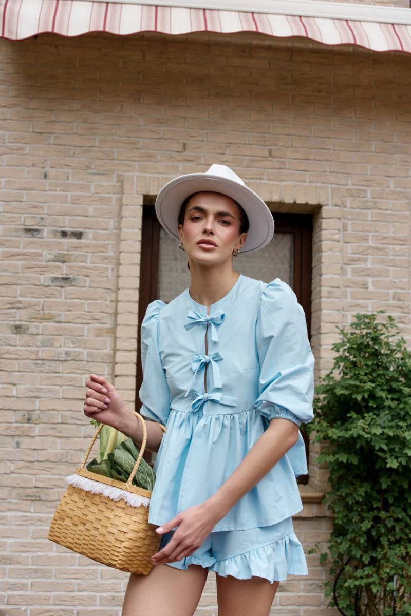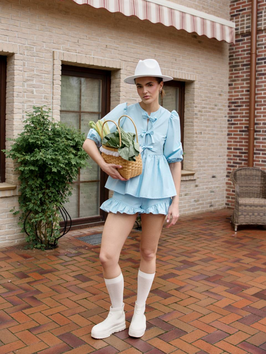 Расслабленные шорты и блузка передают атмосферу тех самых дней, когда не нужно спешить, чтобы почувствовать вкус жизни. Быть собой, ловить солнечный свет, наслаждаться спокойствием и выбирать маршрут не по плану, а по настроению.