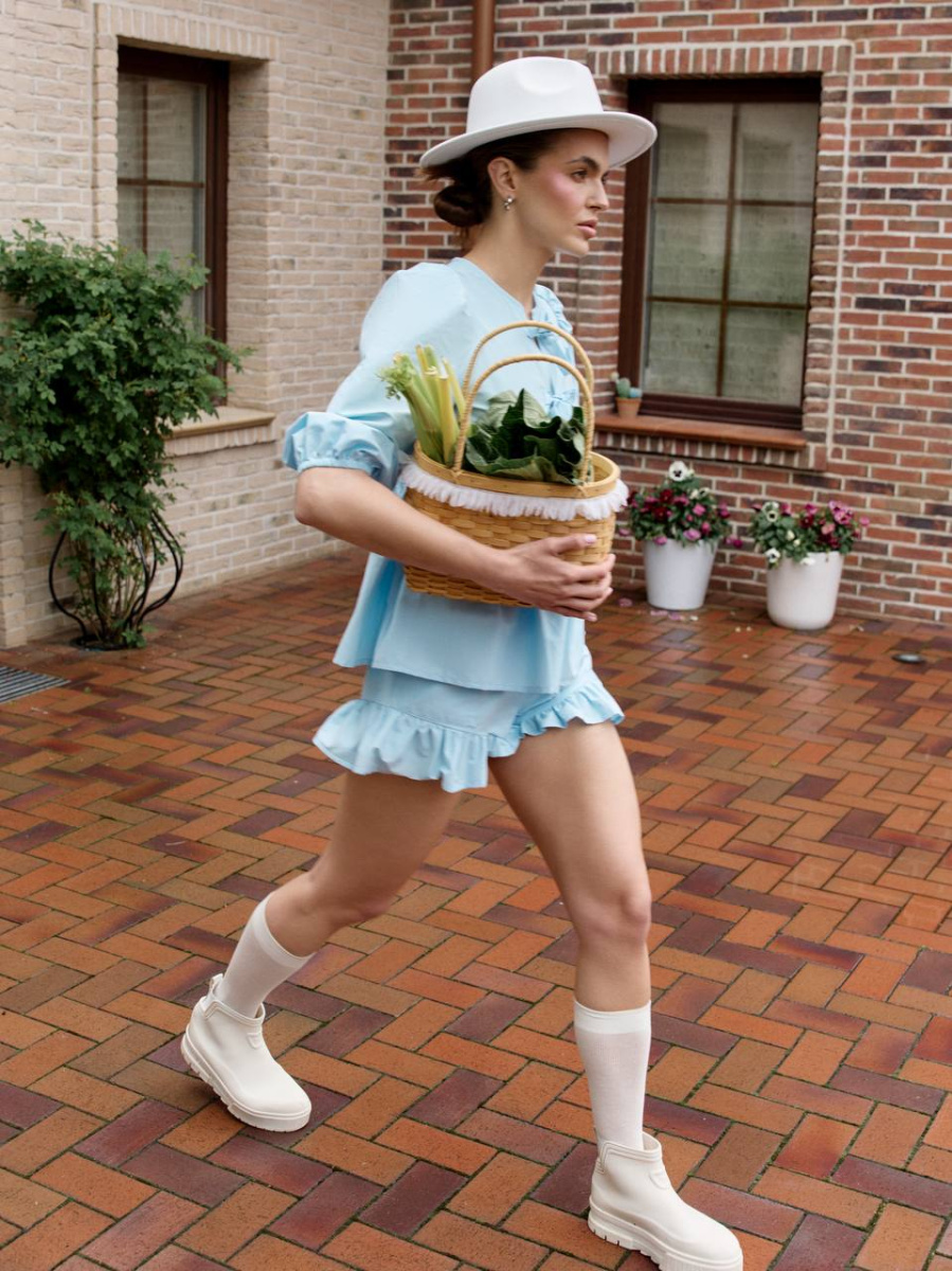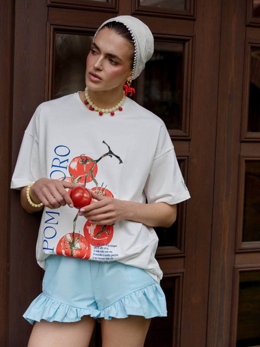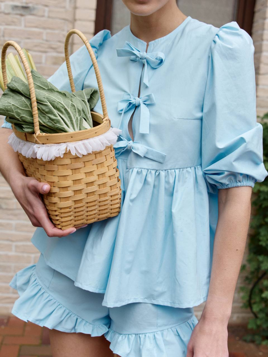 Расслабленные шорты и блузка передают атмосферу тех самых дней, когда не нужно спешить, чтобы почувствовать вкус жизни. Быть собой, ловить солнечный свет, наслаждаться спокойствием и выбирать маршрут не по плану, а по настроению.