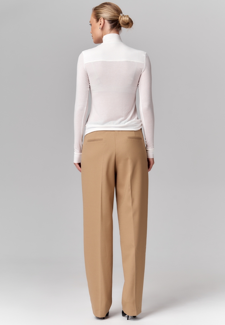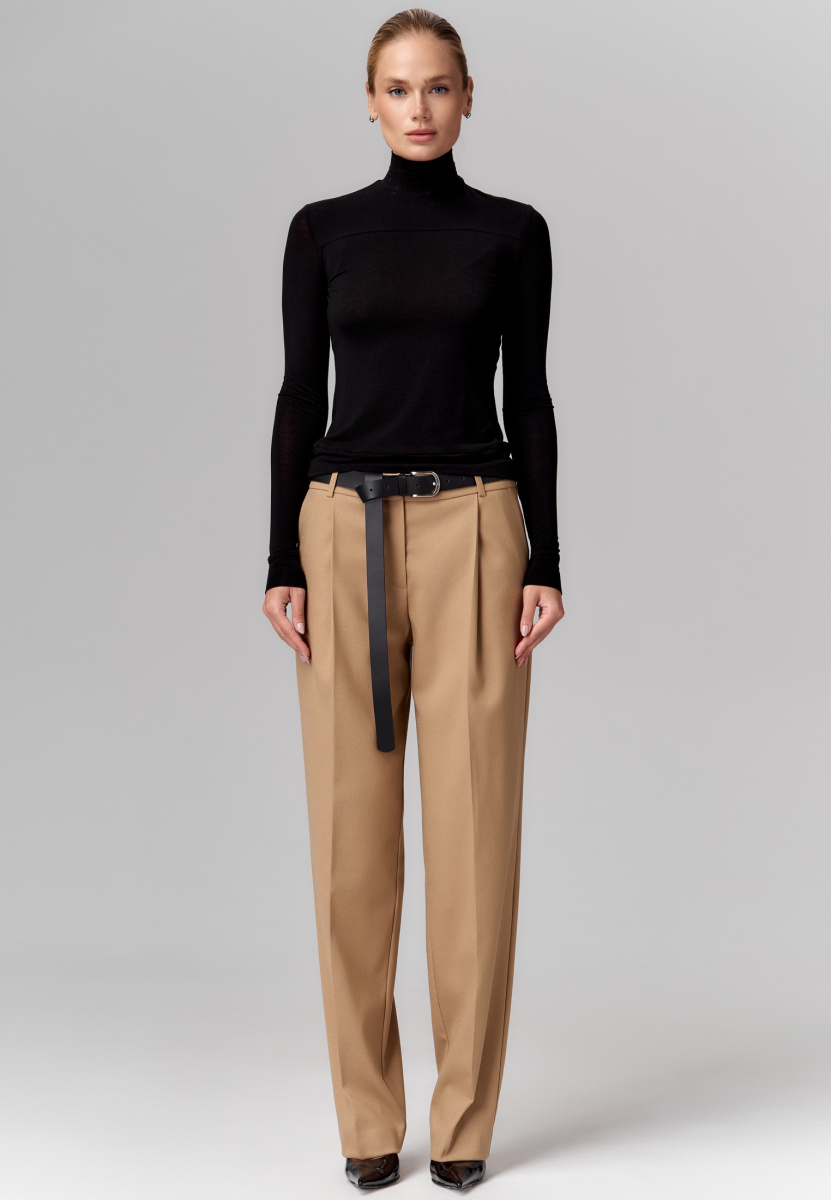 Классические прямые брюки, немного зауженные из итальянского полотна, с содержанием шерсти и вискозы.