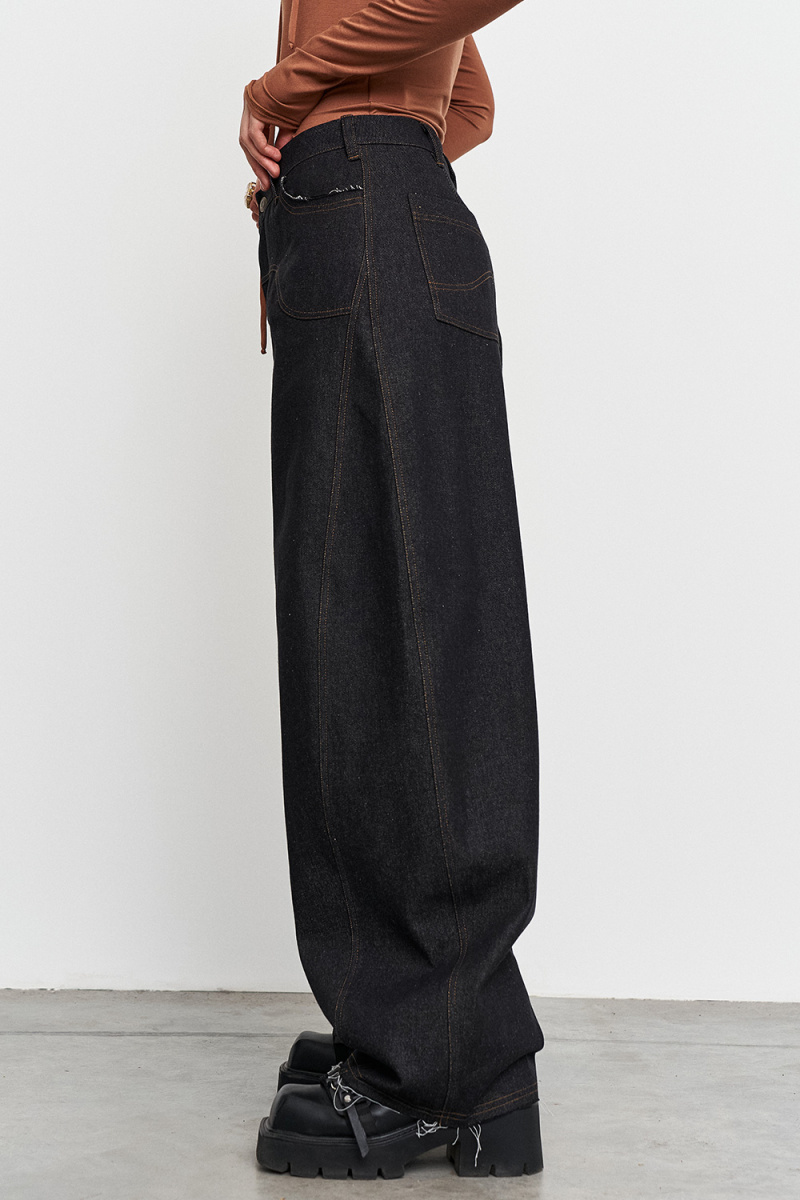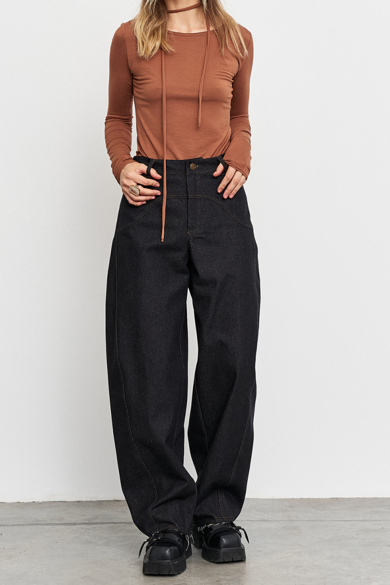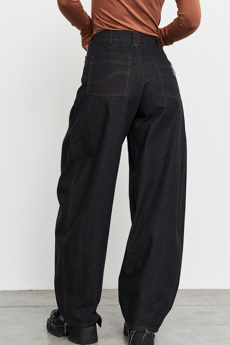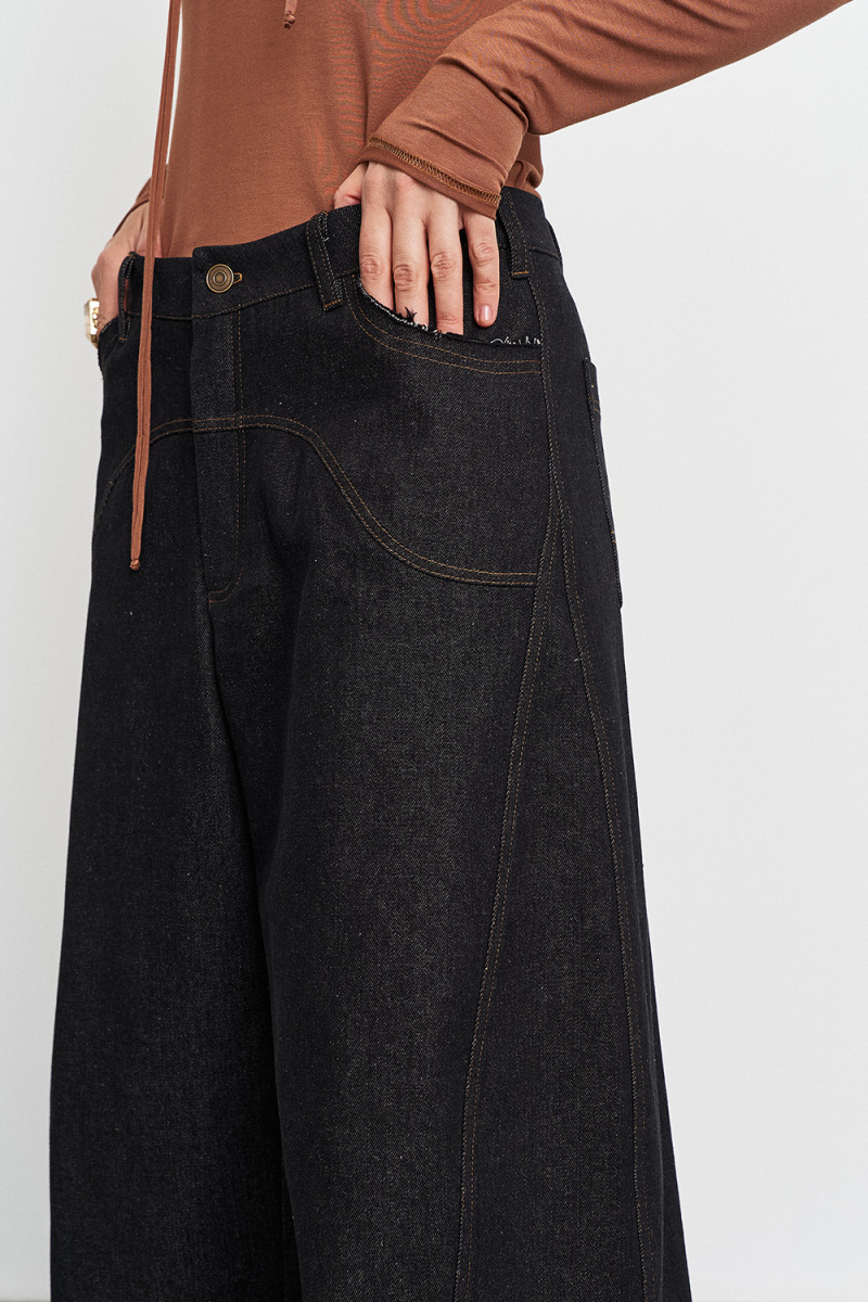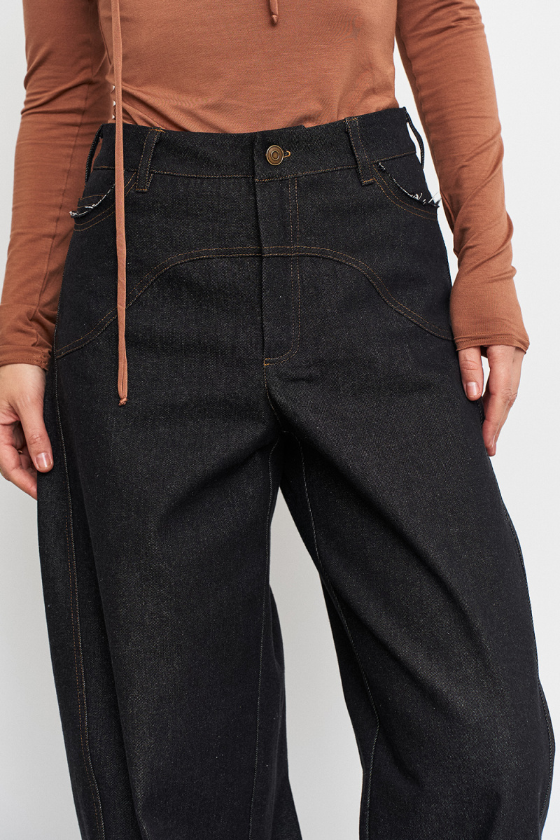 Джинсы актуальной О-формы с клиньями, имеющие акцентные детали в виде необработанного края кармана и контрастных отстрочек. Станут отличным вариантом для повседневности или создания ваших акцентных образов.