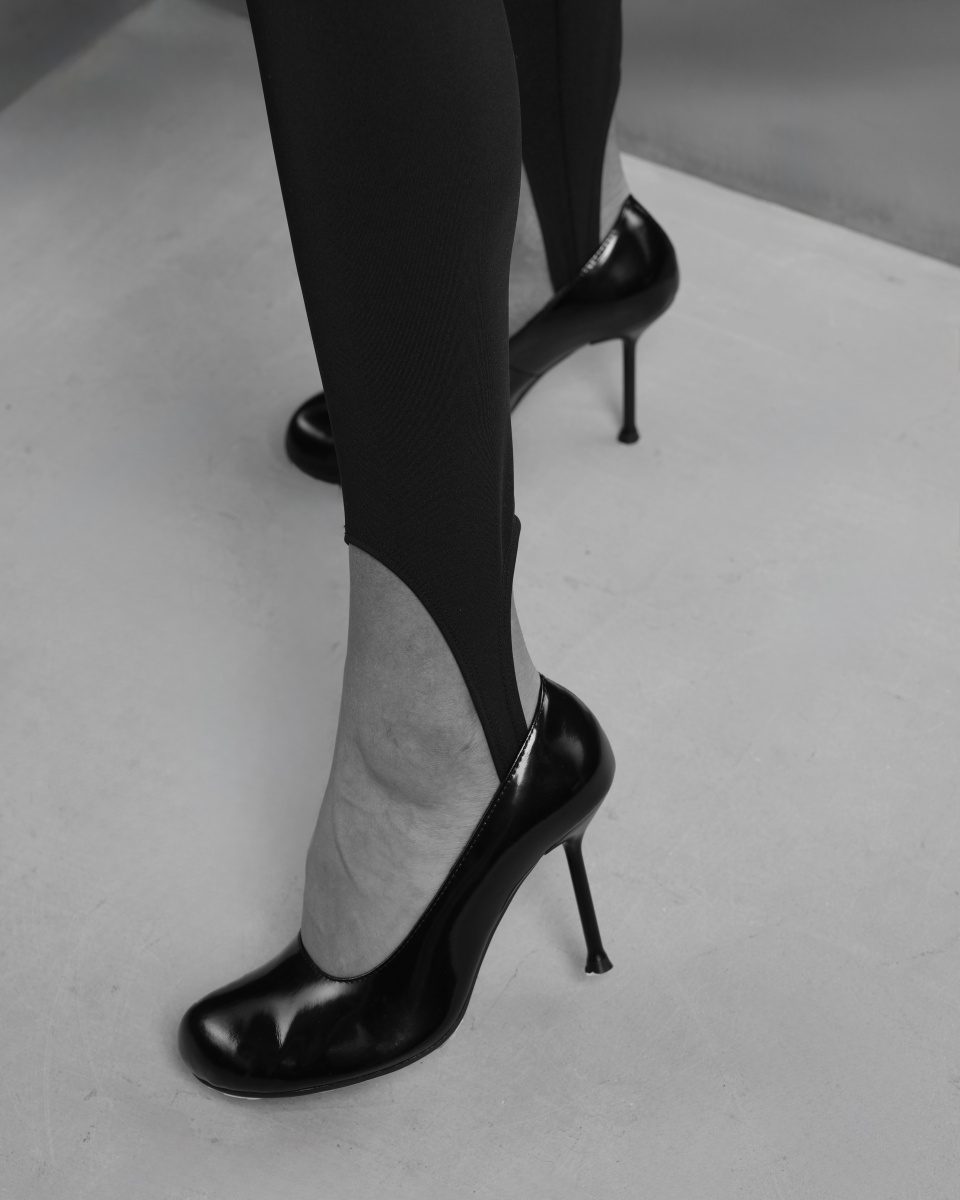 Леггинсы из плотной ткани с хорошей растяжимостью, дополненные штрипками.