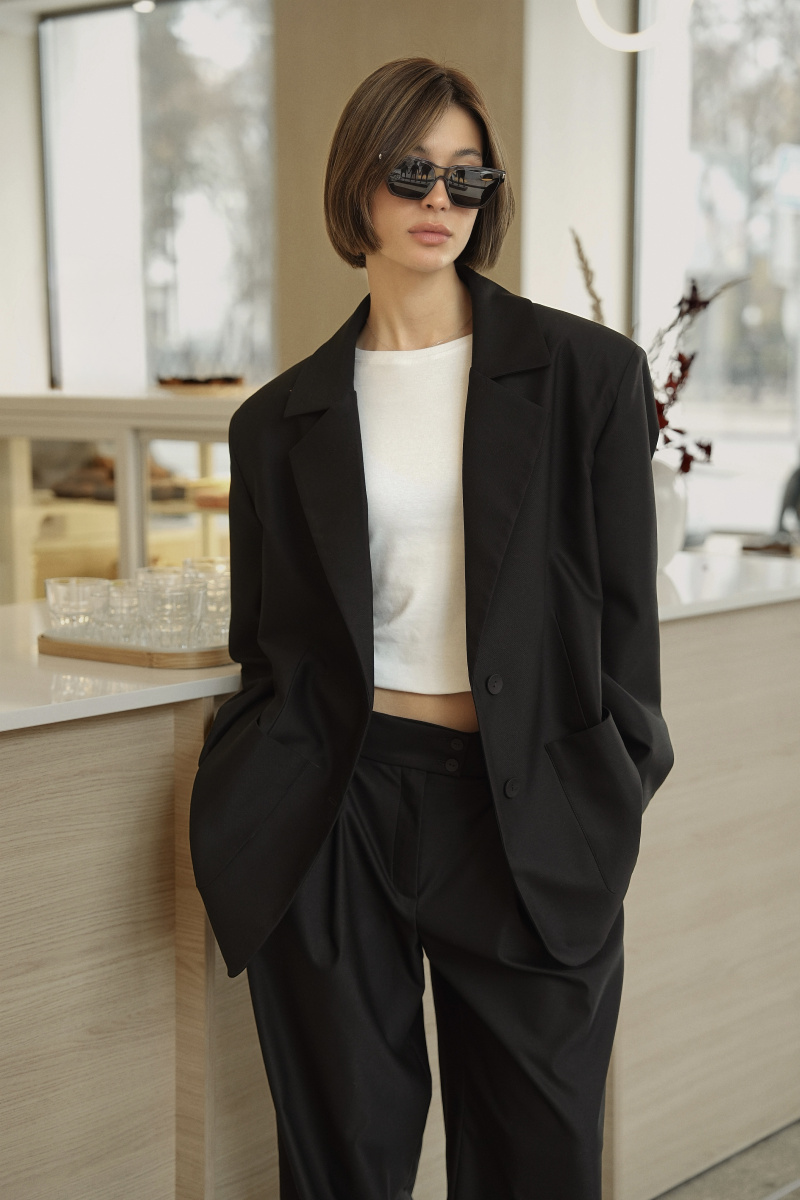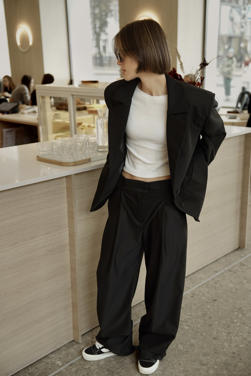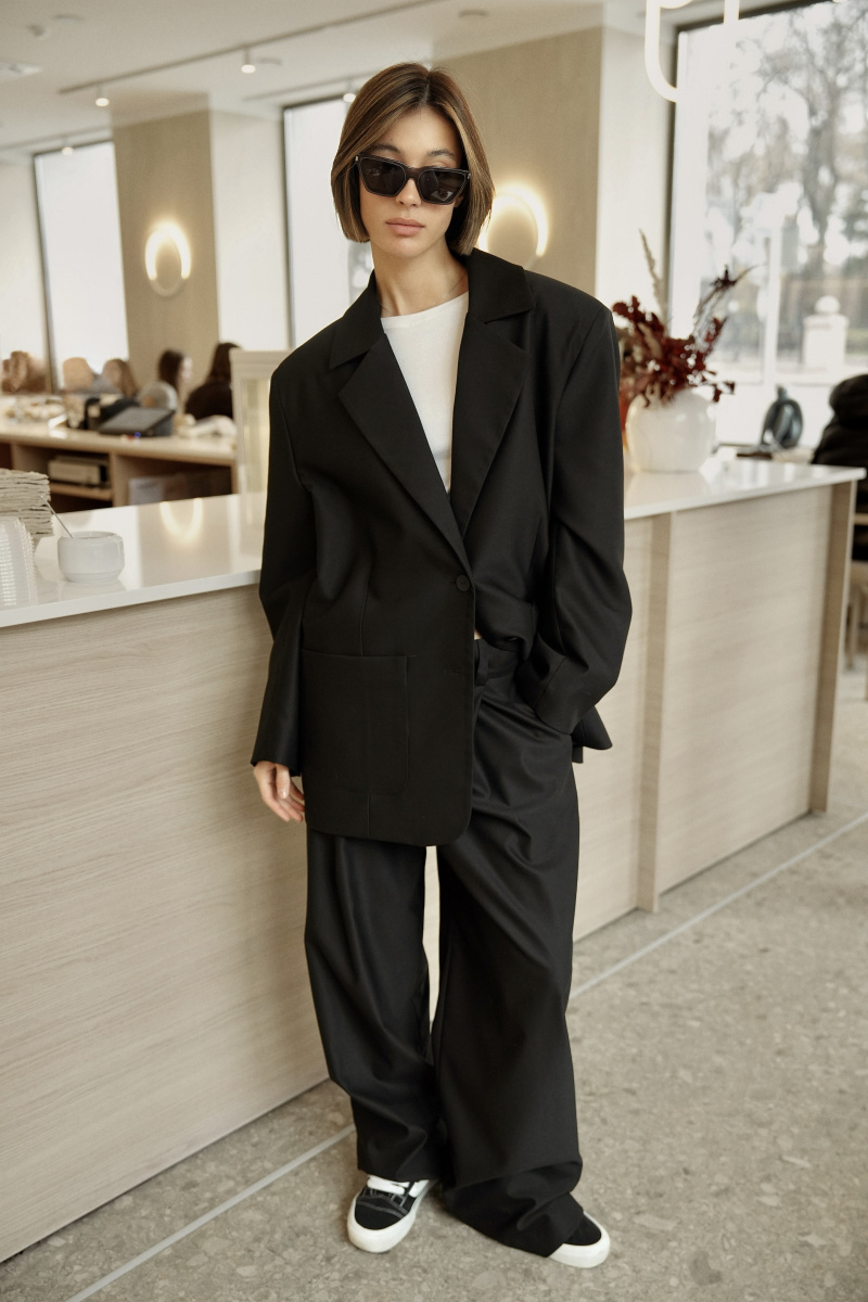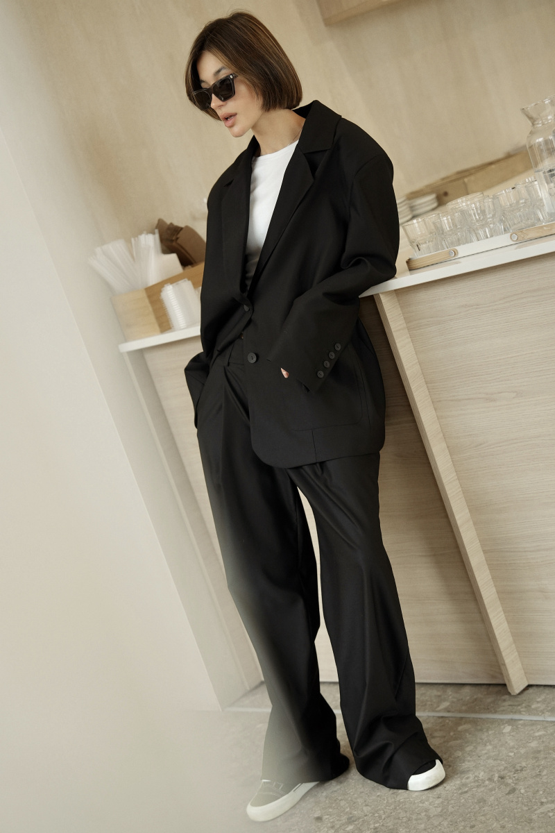 Брючный костюм - одно из самых лучших приобретений в гардероб. Жакет представлен в едином размере. Стильные объемные спущенные плечи, акцентные накладные карманы. Актуальнее этого жакета вы не найдете. Форма, цвет, посадка, все идеально в данном костюме. Брюки с высокой посадкой и защипами спереди. Представлены в двух размерах: S, M. Приобретая наш костюм, вы приобретаете две отдельные стильные единицы, которые сможете сочетать с любыми вещами из вашего гардероба.
