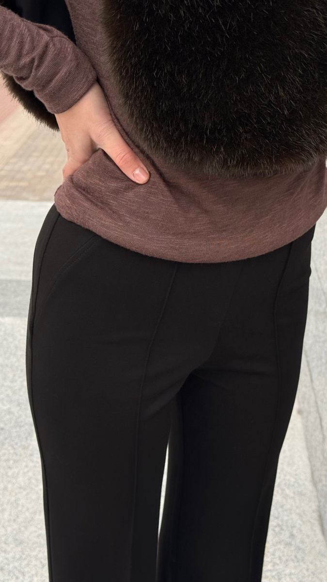 Фигурные подрезы сзади подчеркнут достоинства фигуры, а стрелки спереди удлинят ноги. Слегка расширенный книзу силуэт прекрасно сочетается с обувью на каблуке и с кроссовками. Подойдут для нарядных и повседневных образов